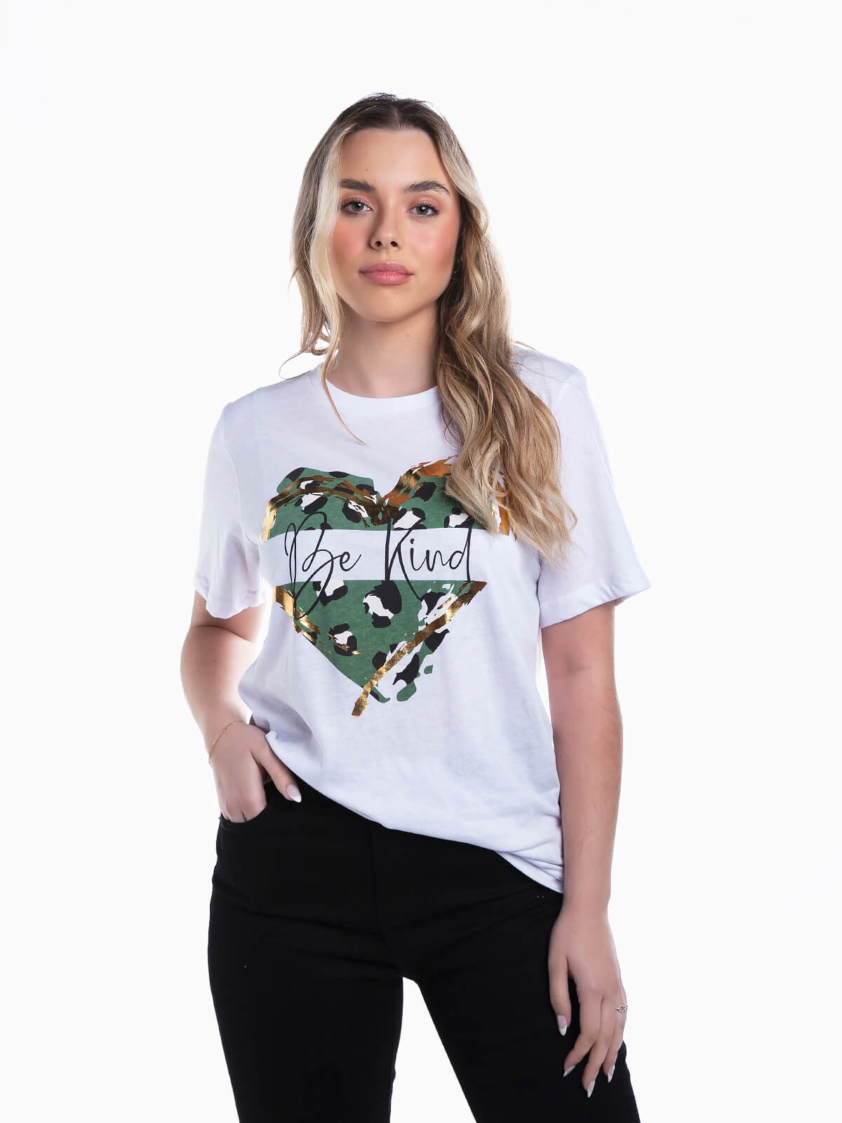 T-shirt de manga curta com estampado de coração e letras. T-shirt com decote redondo.