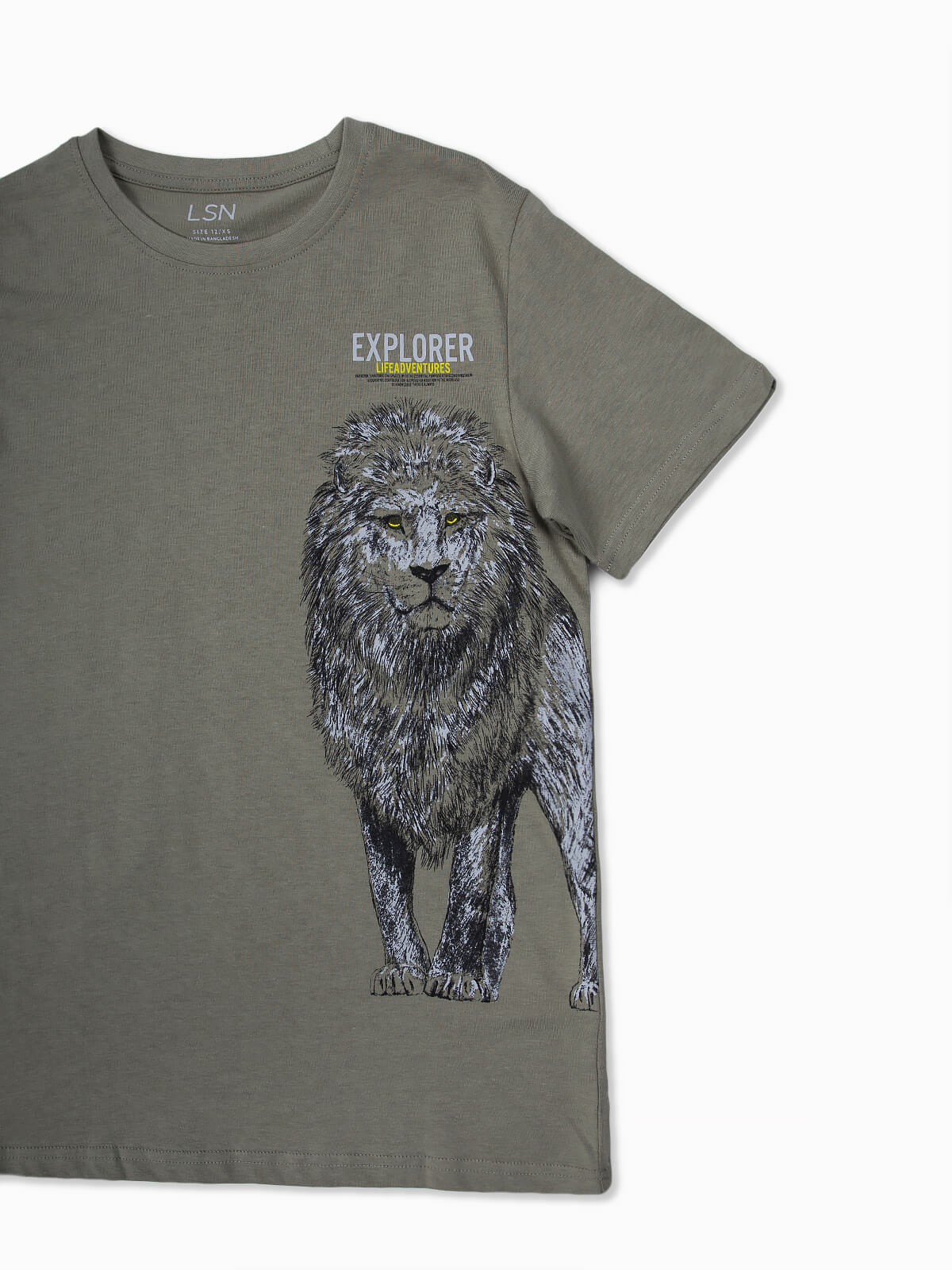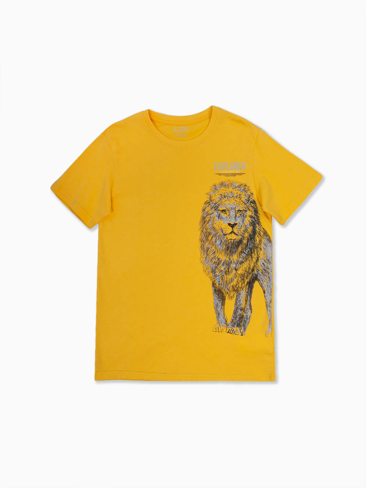 T-shirt de manga curta com estampado de leão para menino. T-shirt em 100% algodão de gola redonda.