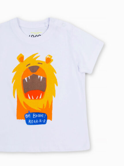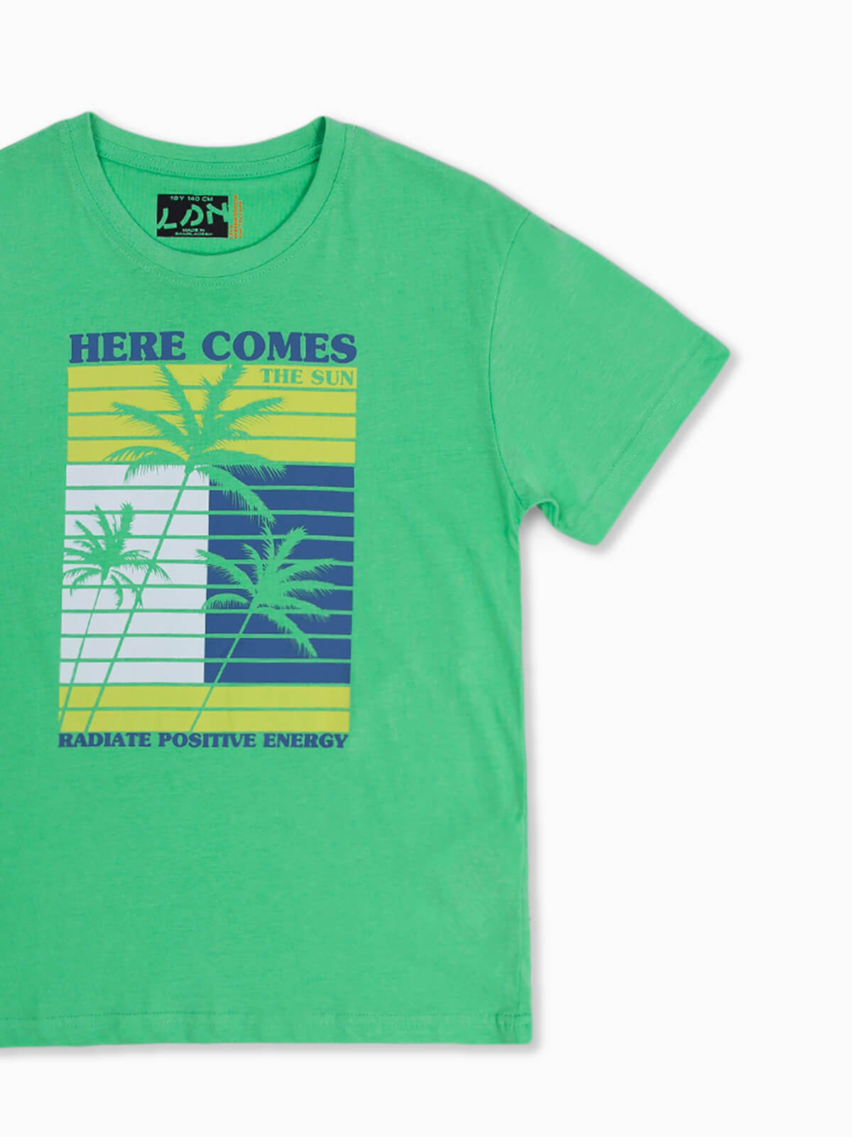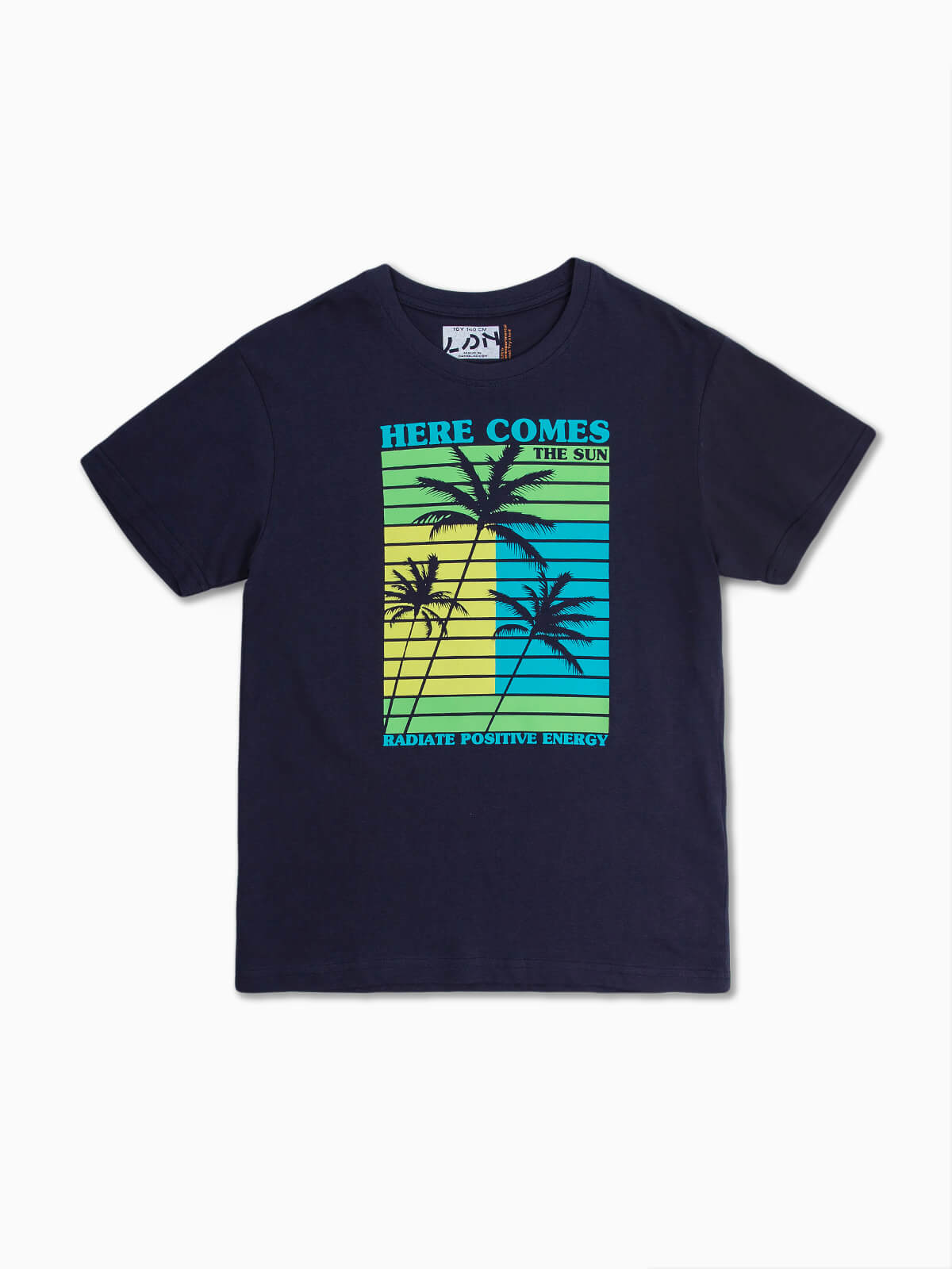 T-shirt de manga curta com estampado de palmeiras para menino. T-shirt com gola redonda.