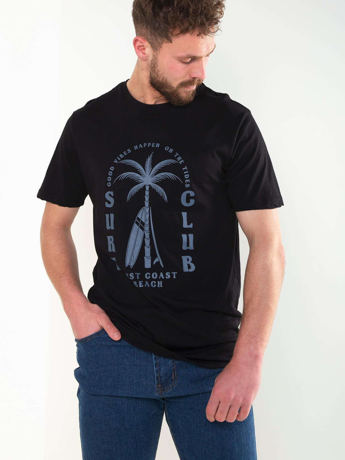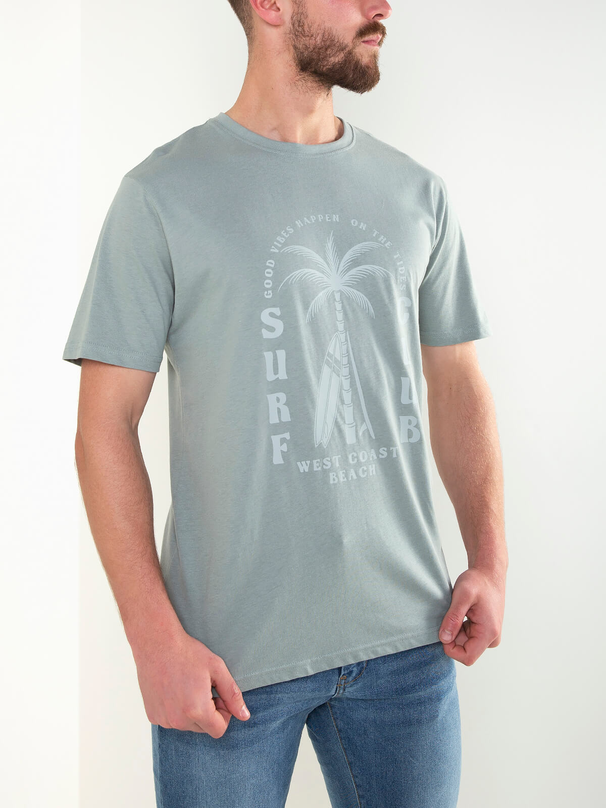 T-shirt de manga curta com estampado frontal inspirado no surf e estilo descontraído. Modelo confortável com gola redonda, ideal para looks casuais do dia a dia.