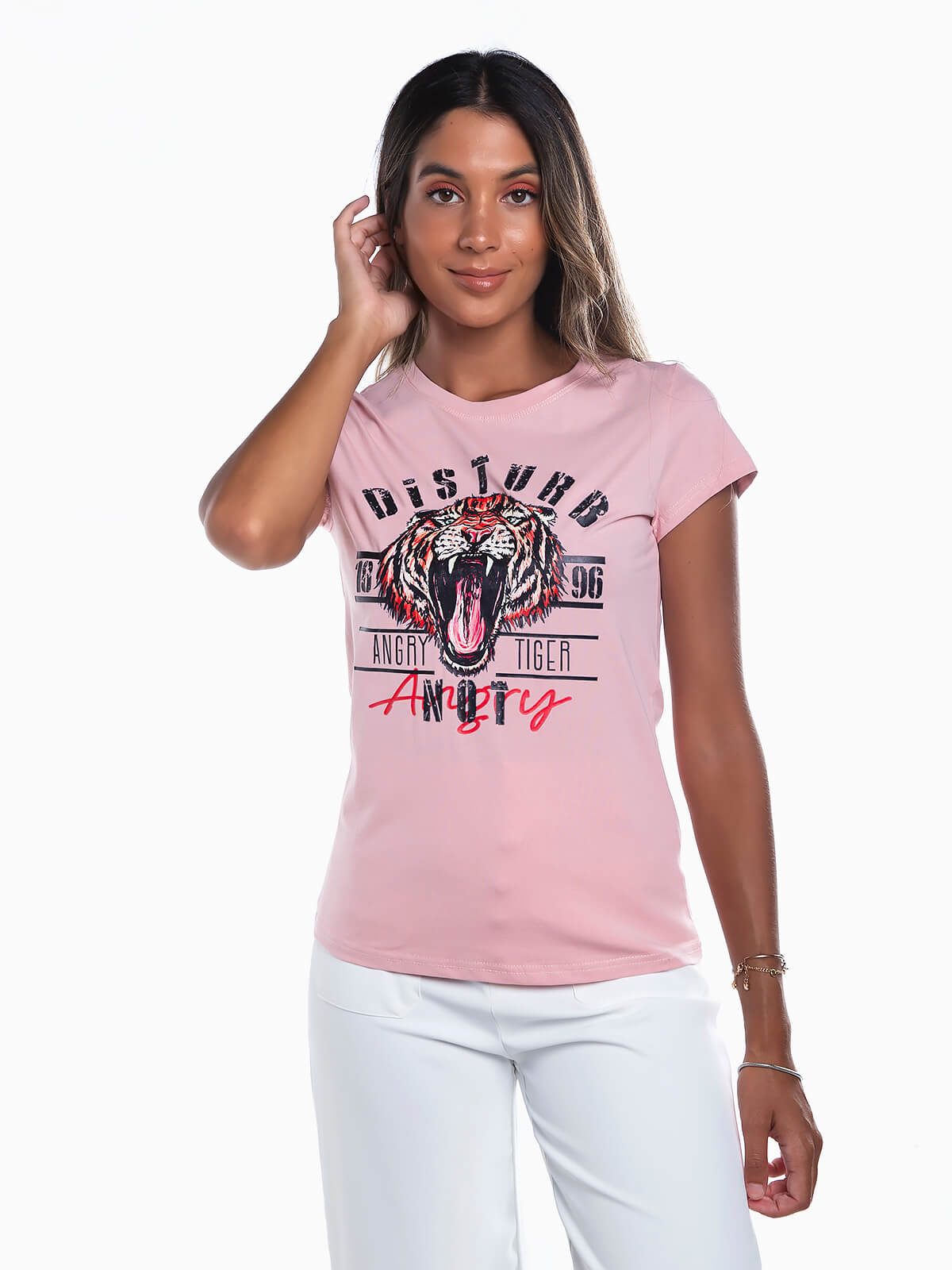 T-shirt de manga curta com estampado de tigre e letras. T-shirt com decote redondo.