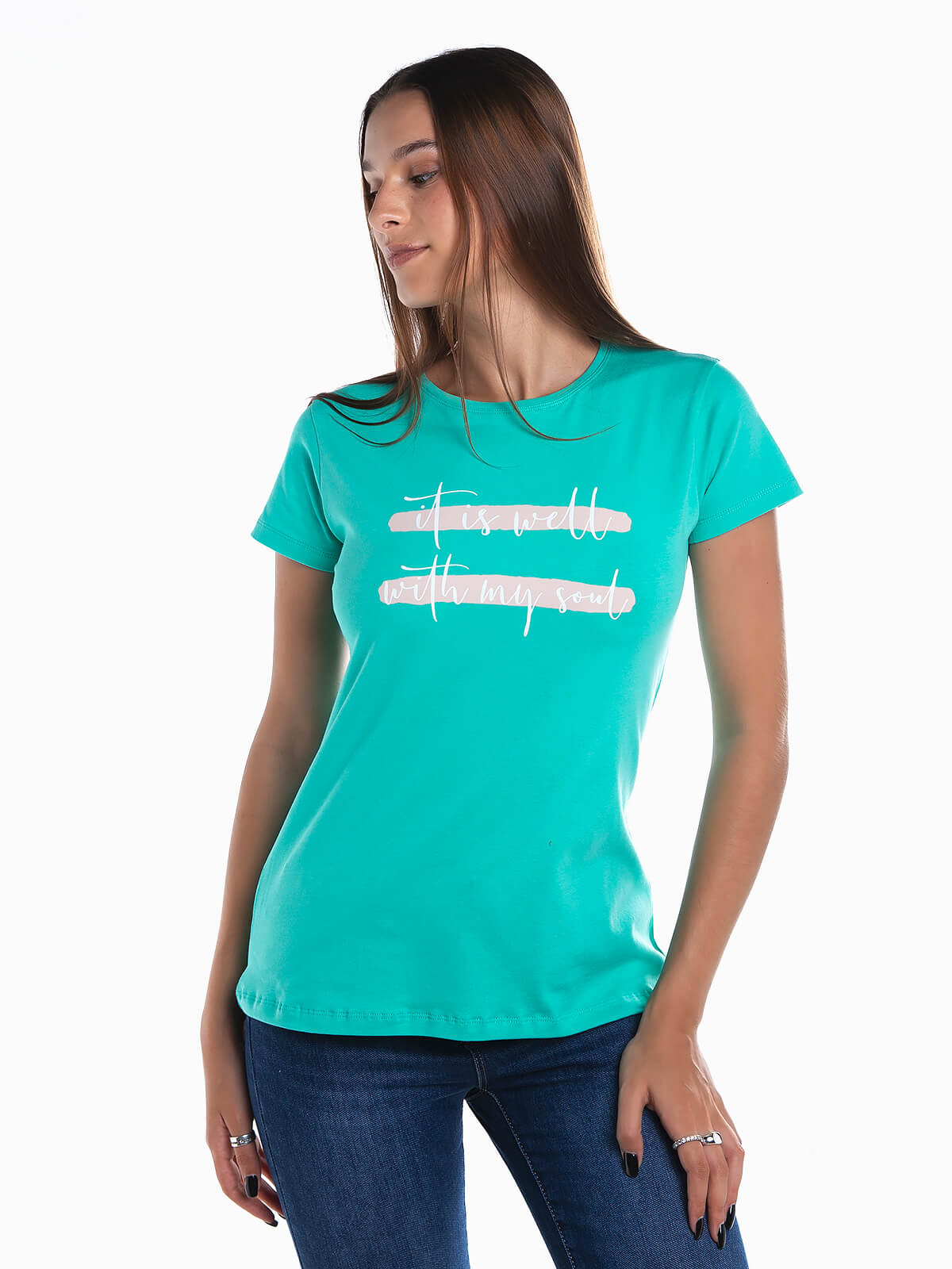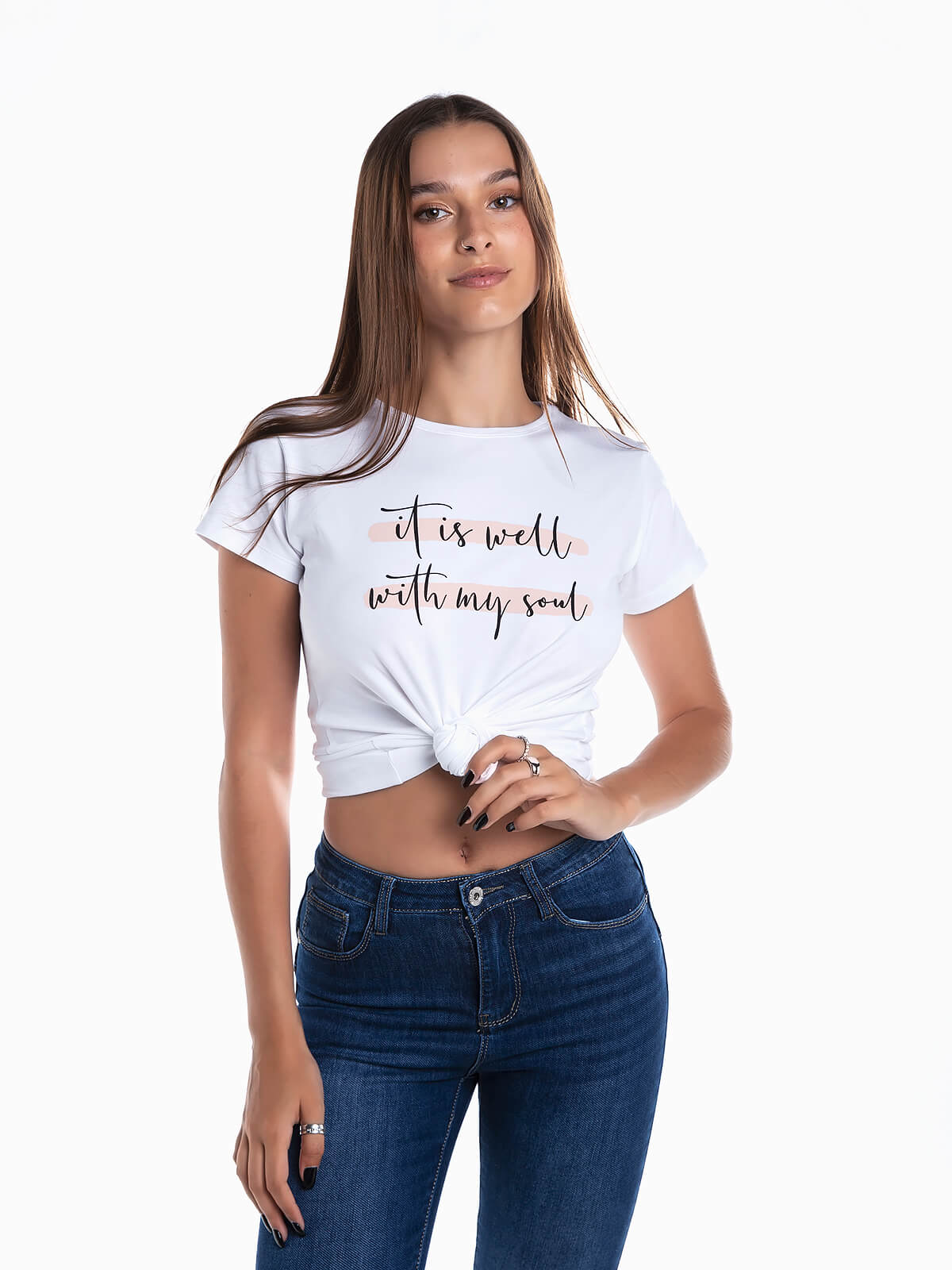 Início Mulher T-shirts T-shirt manga curta frase estampada