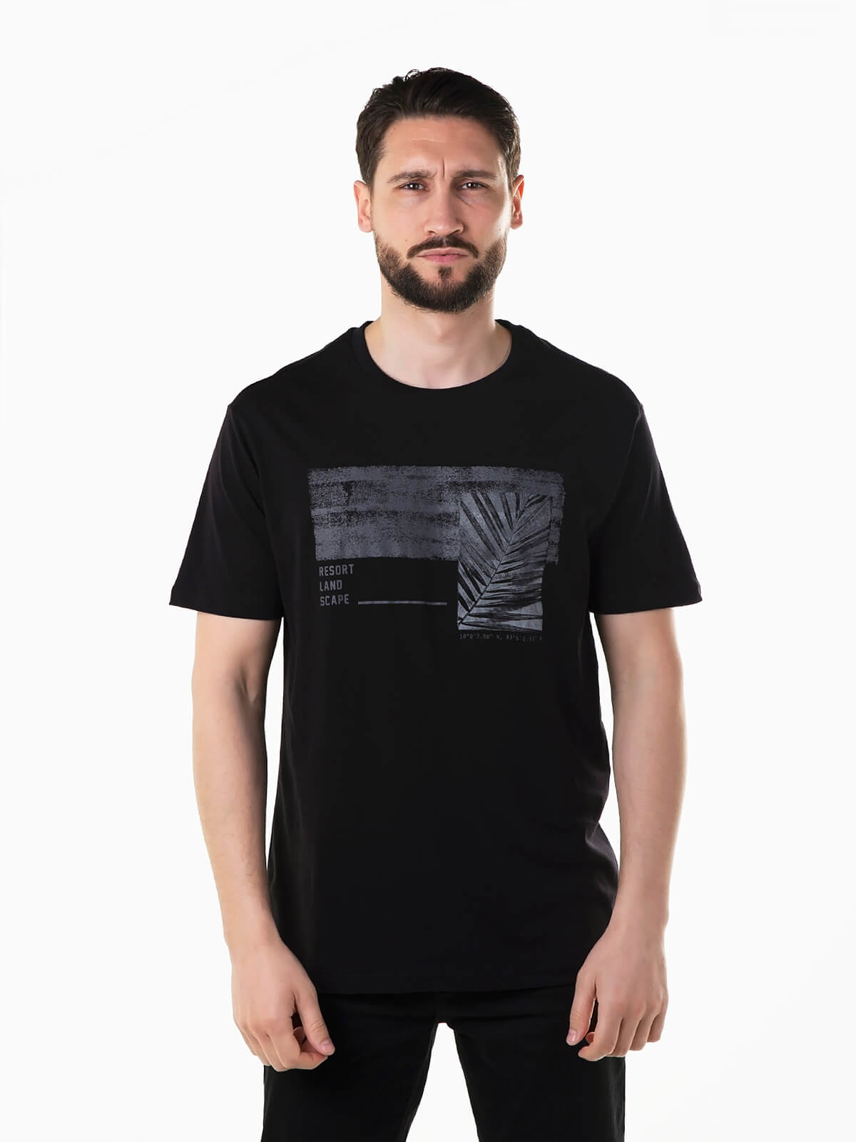 T-shirt de manga curta com gola redonda confeccionada em tecido 100% algodão para maior conforto. T-shirt para homem com estampado no peito.