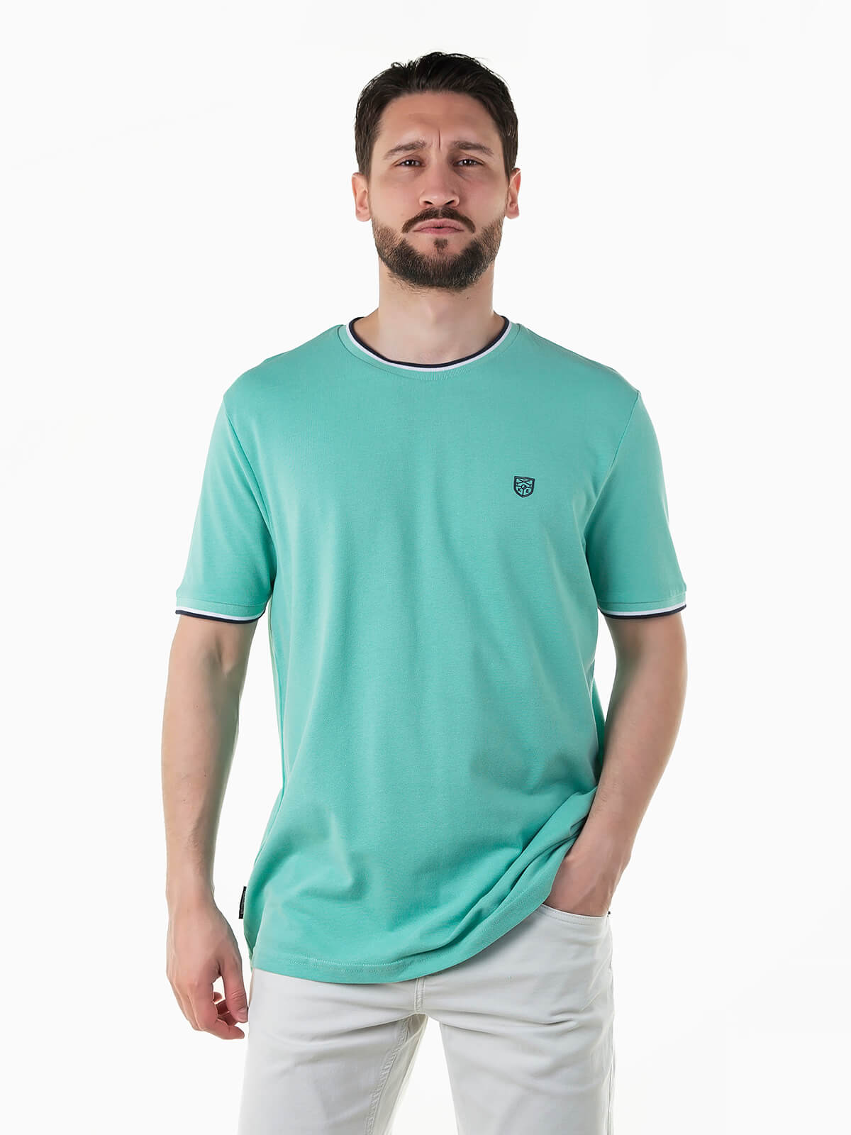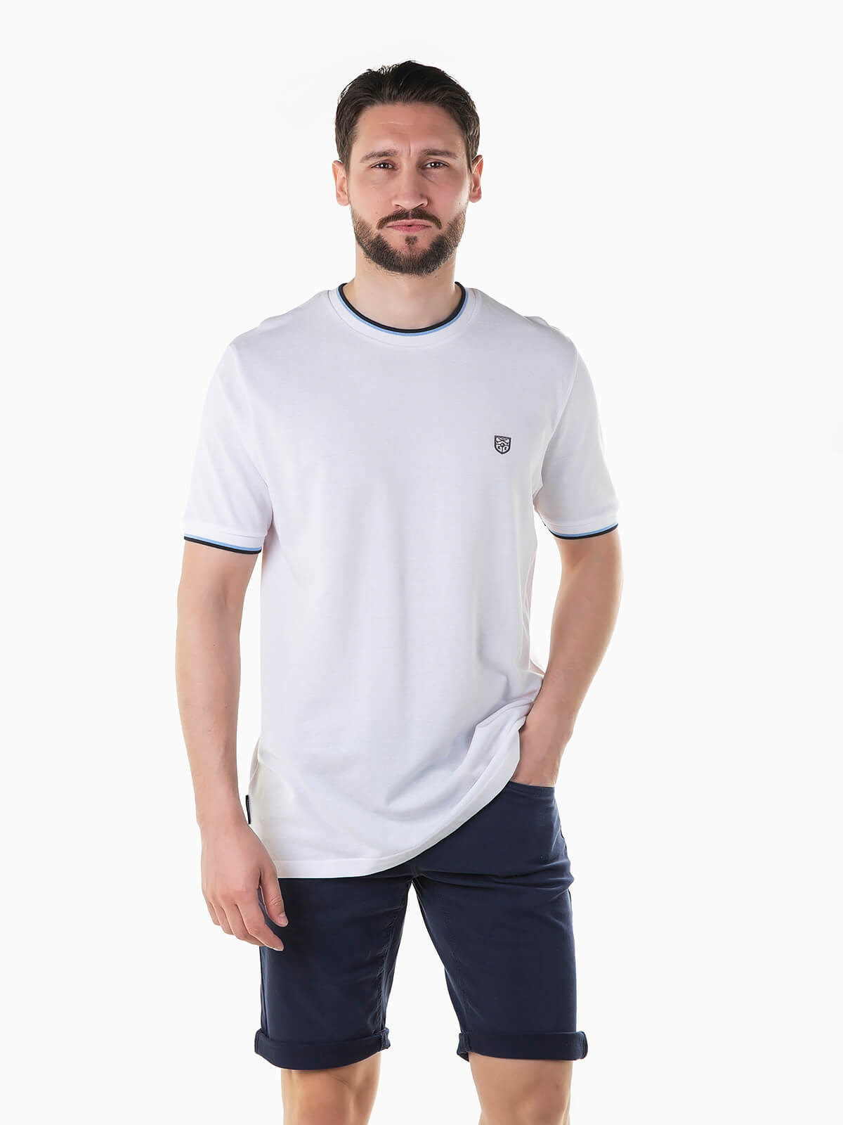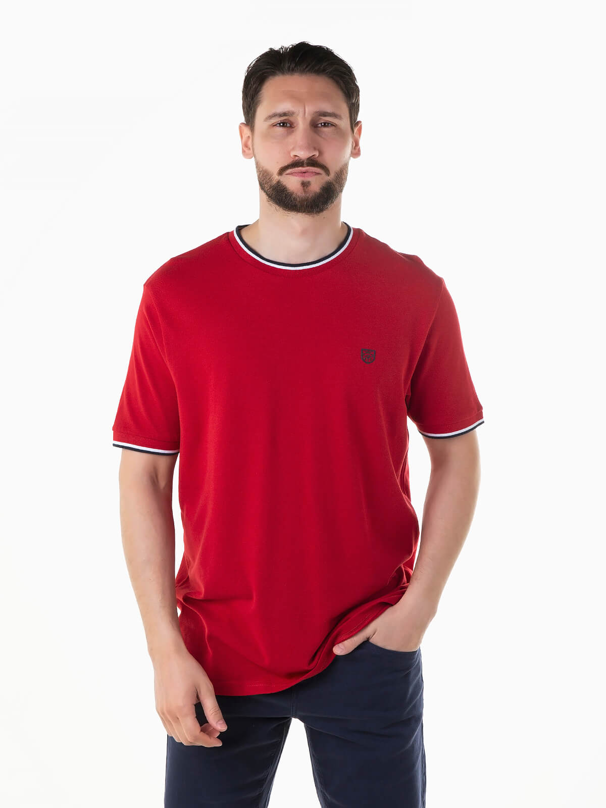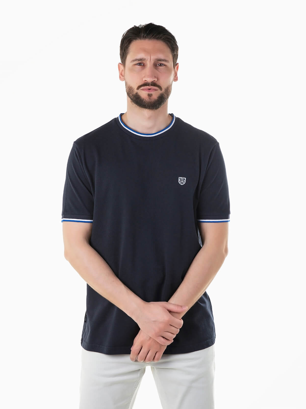 T-shirt de manga curta em malha piqué com símbolo bordado no peito. T-shirt com gola redonda e rebordo contrastante.