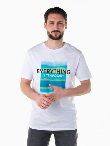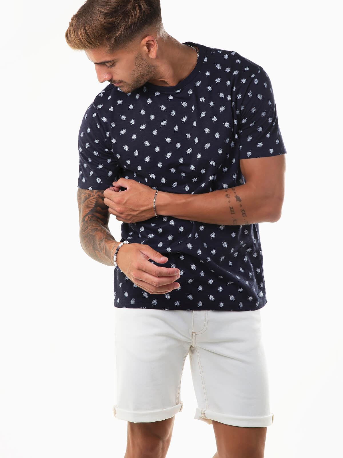 T-shirt malha mesclada de manga curtacom estampado folhas em contraste. T-shirt para homem confecionada em tecido 100% algodão para maior conforto. Gola redonda.