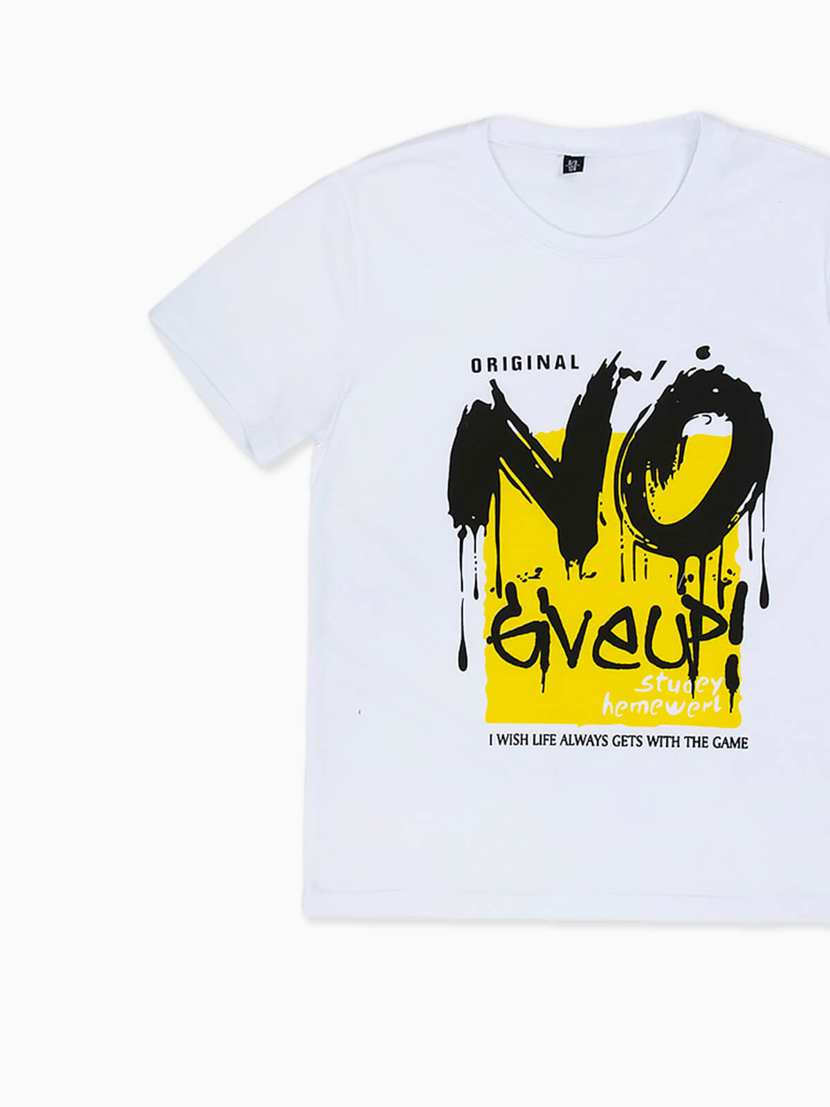 T-shirt de manga curta com estampado de letras. T-shirt para menino de gola redonda.