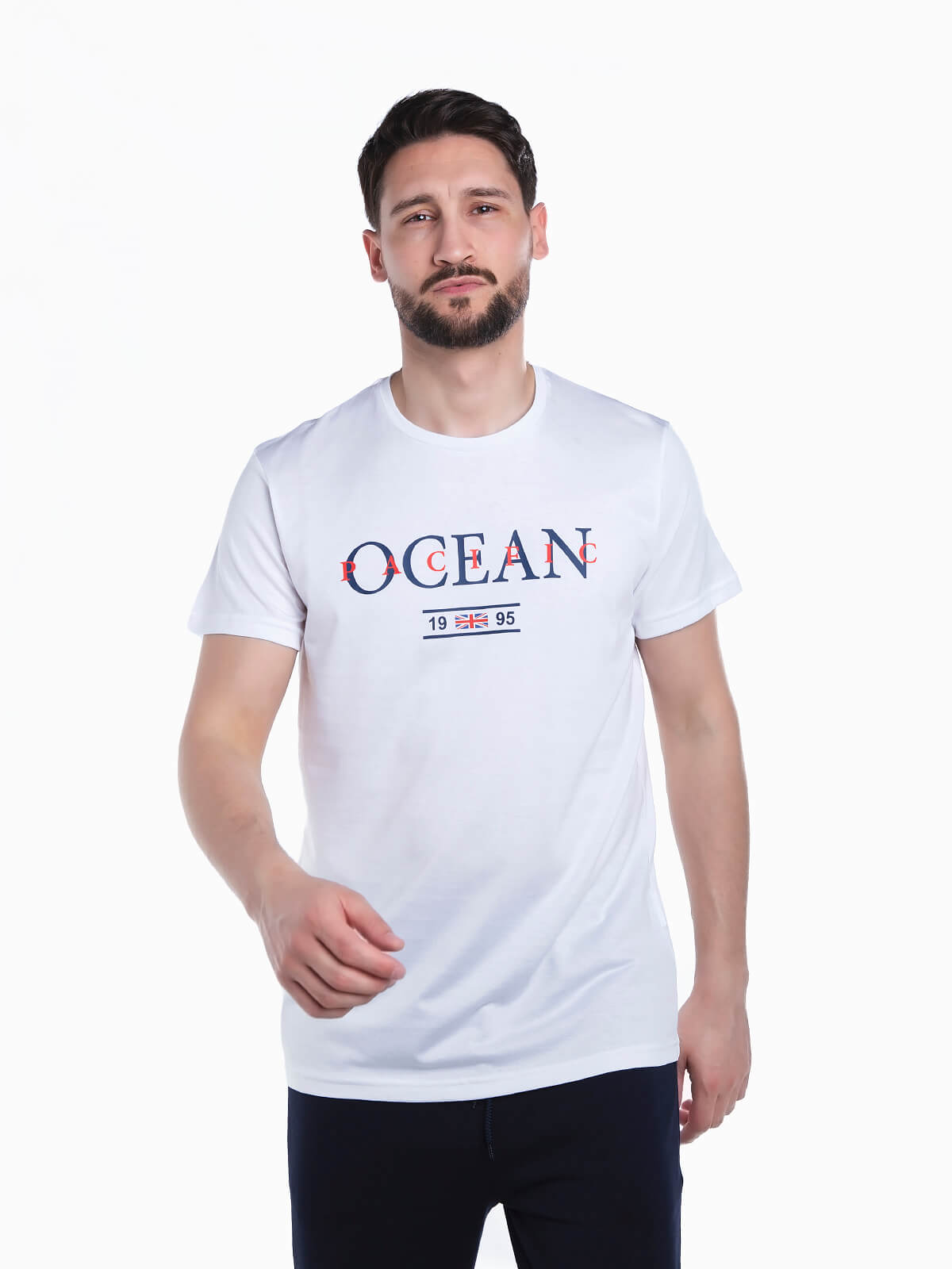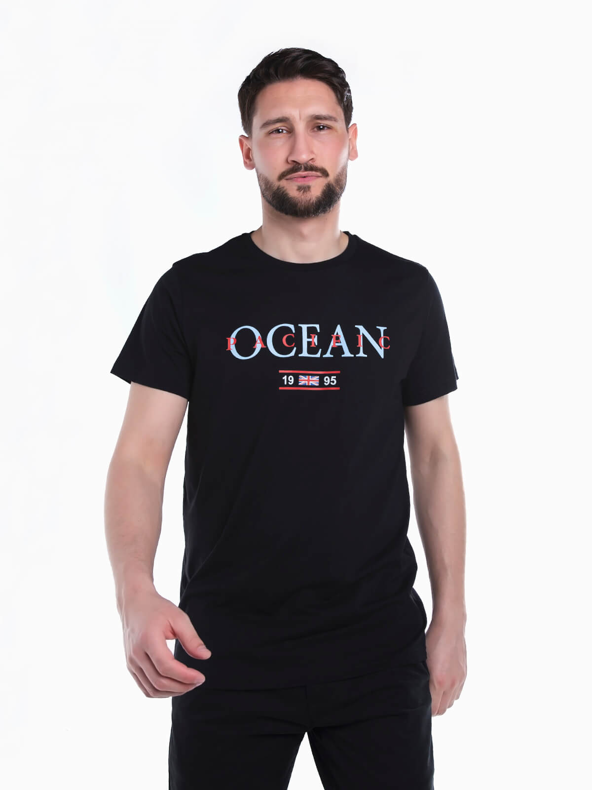 T-shirt de manga curta com estampado ‘Ocean’ no peito. T-shirt em tecido 100% algodão com gola redonda.
