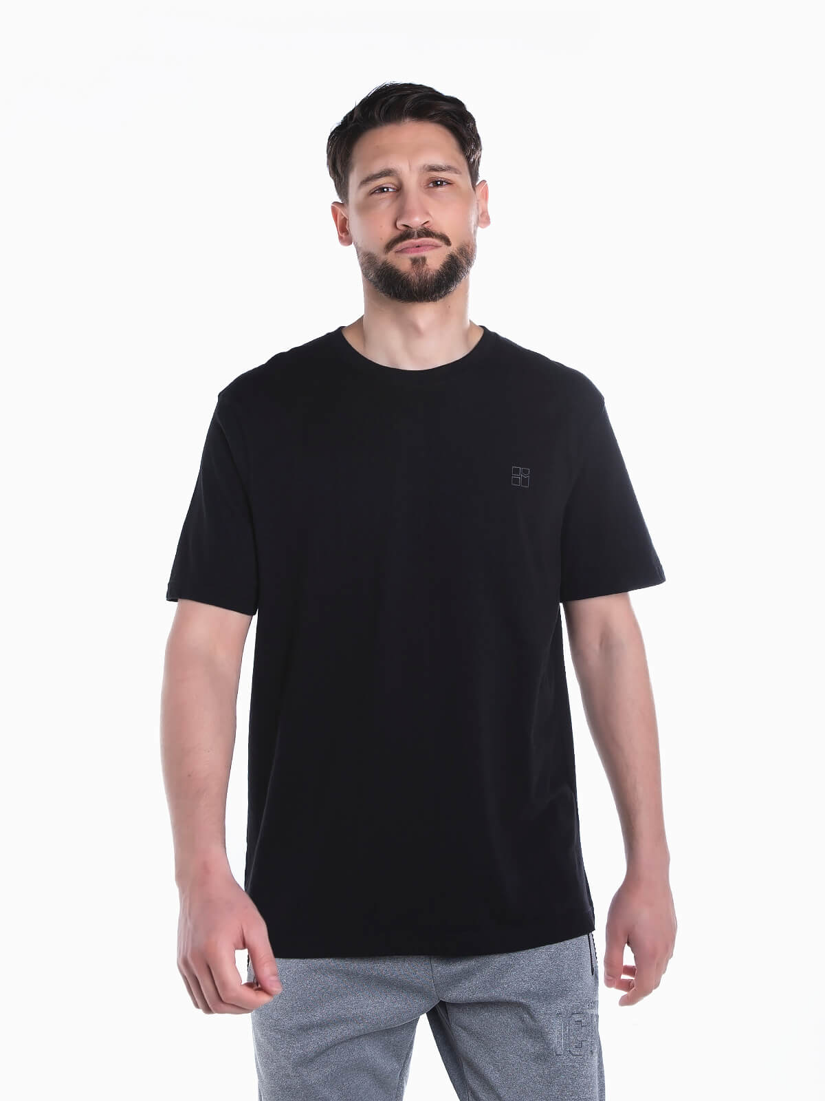T-shirt de manga curta com símbolo em relevo no peito. T-shirt em tecido 100% algodão com gola redonda.