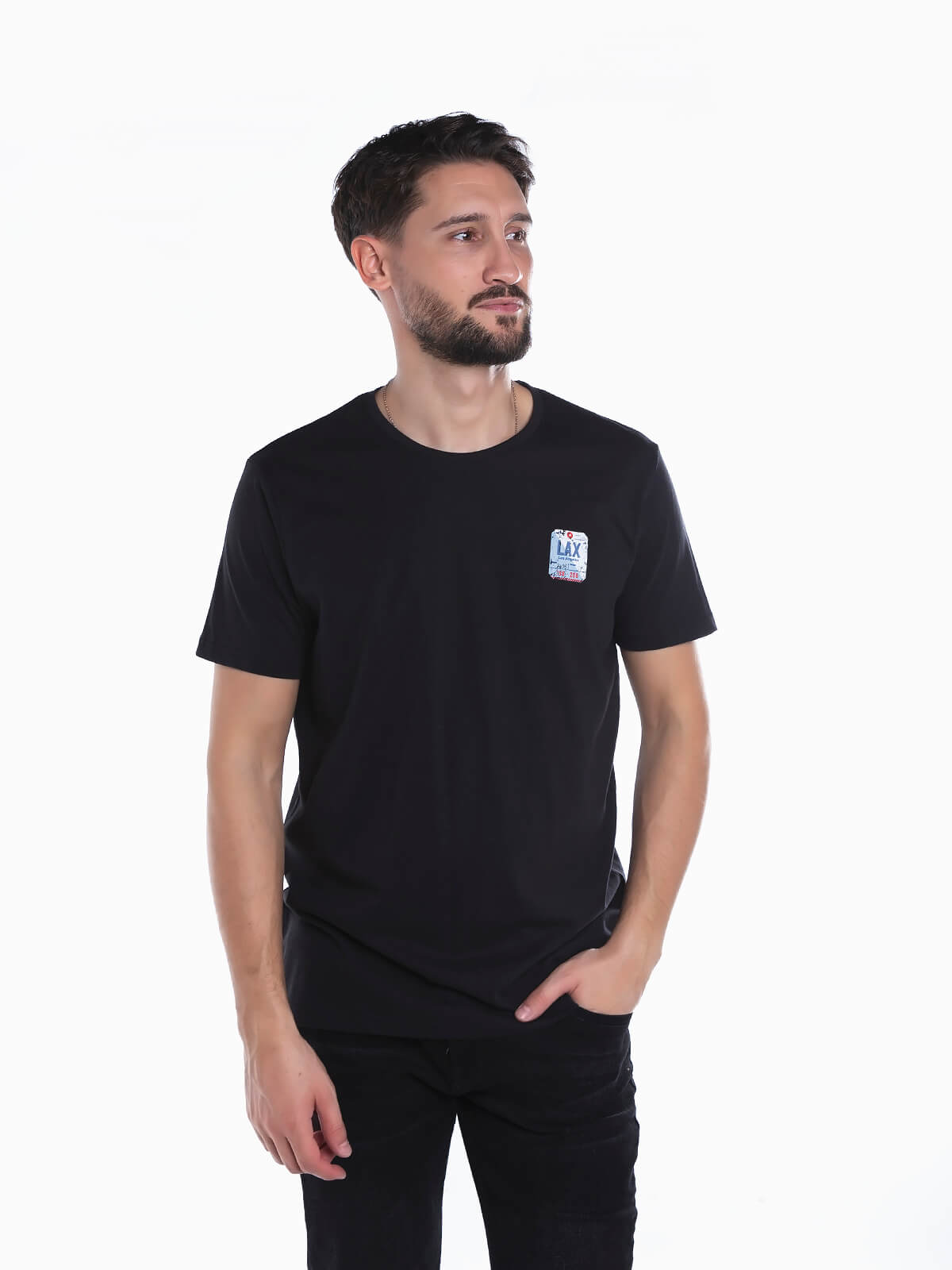 T-shirt de manga curta com símbolo estampado para homem. T-shirt em tecido 100% algodão com gola redonda.