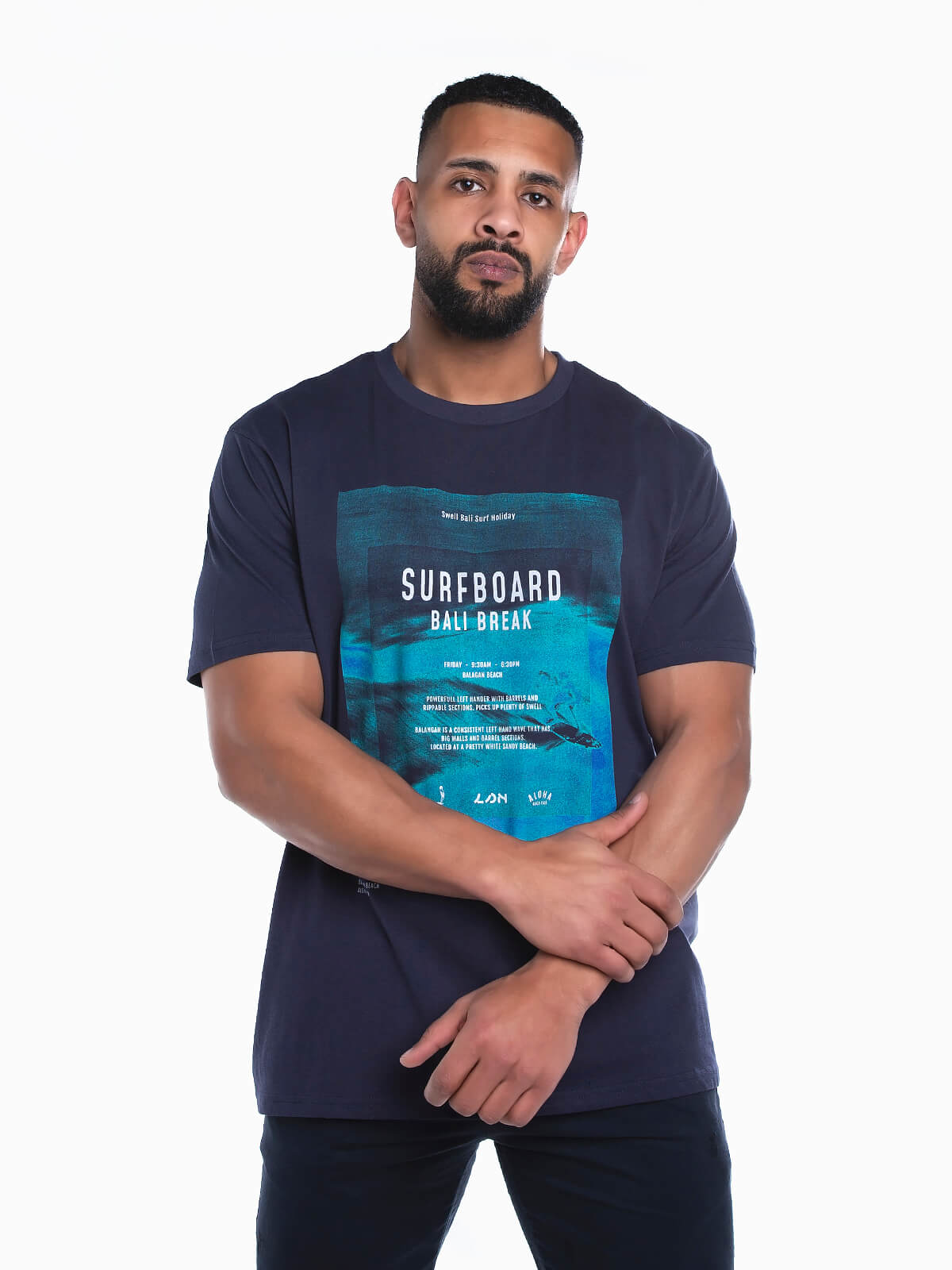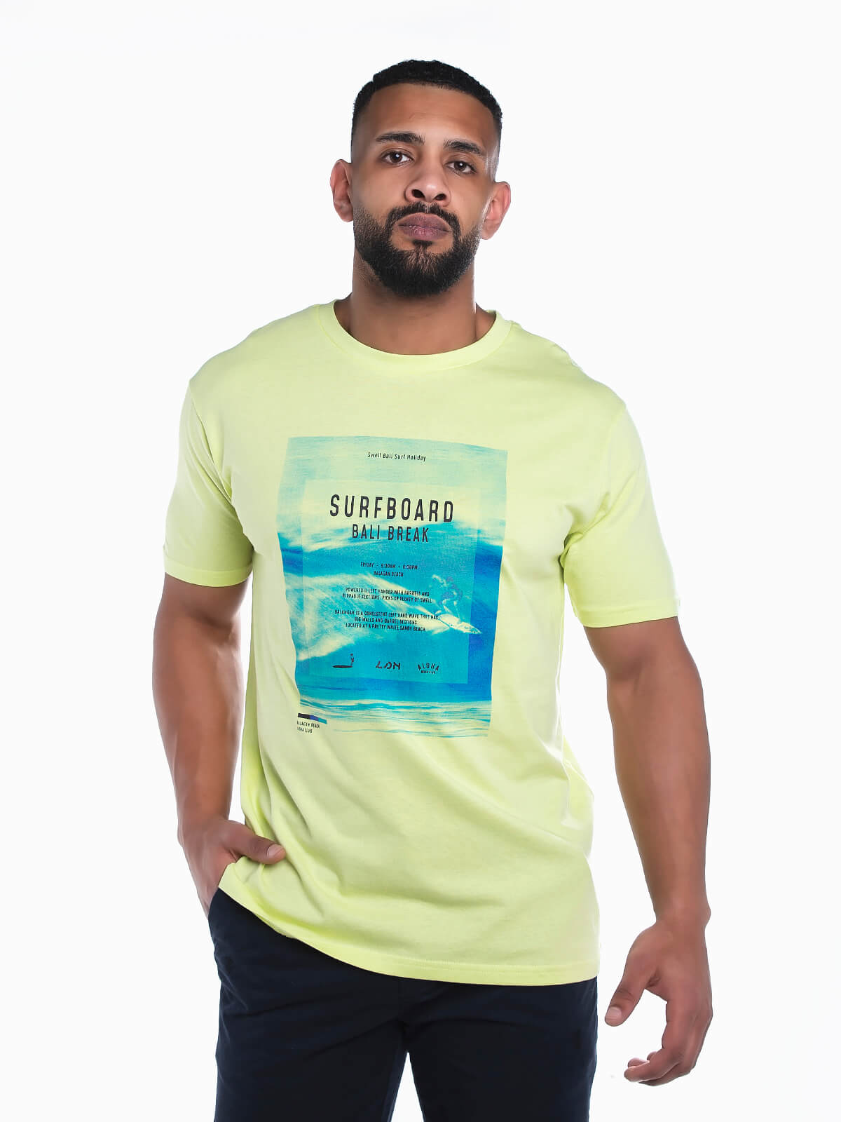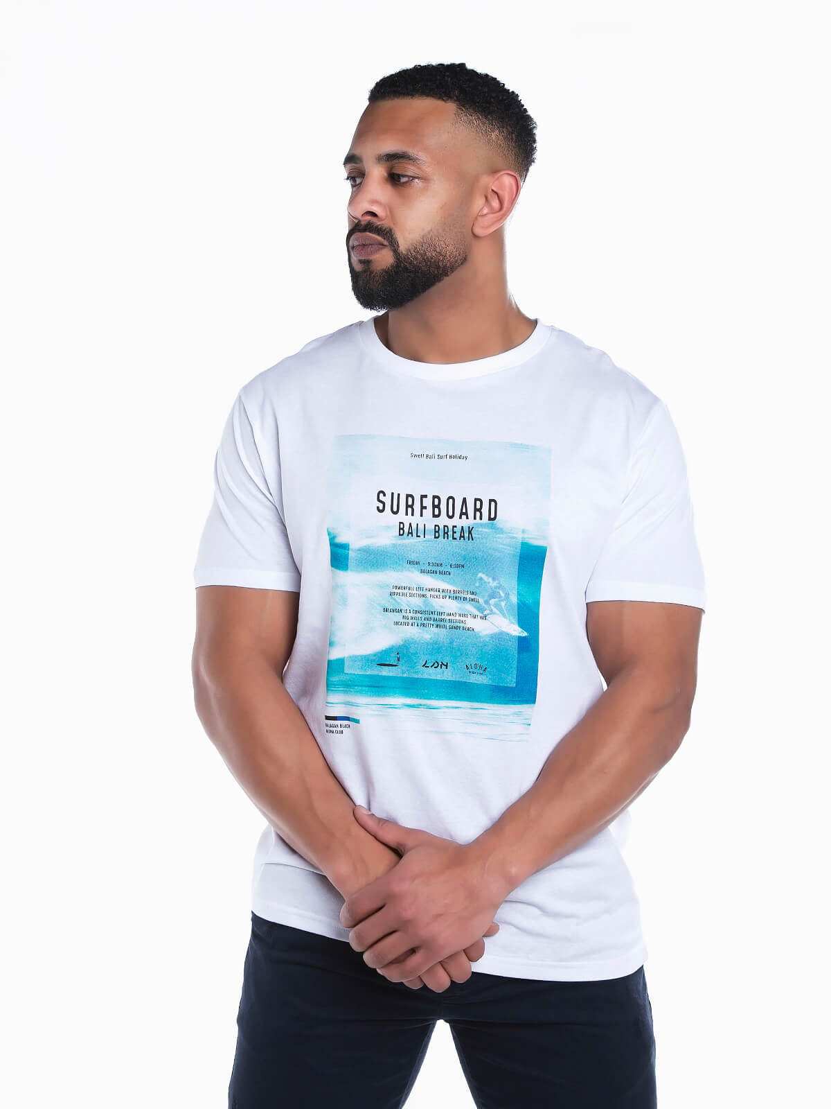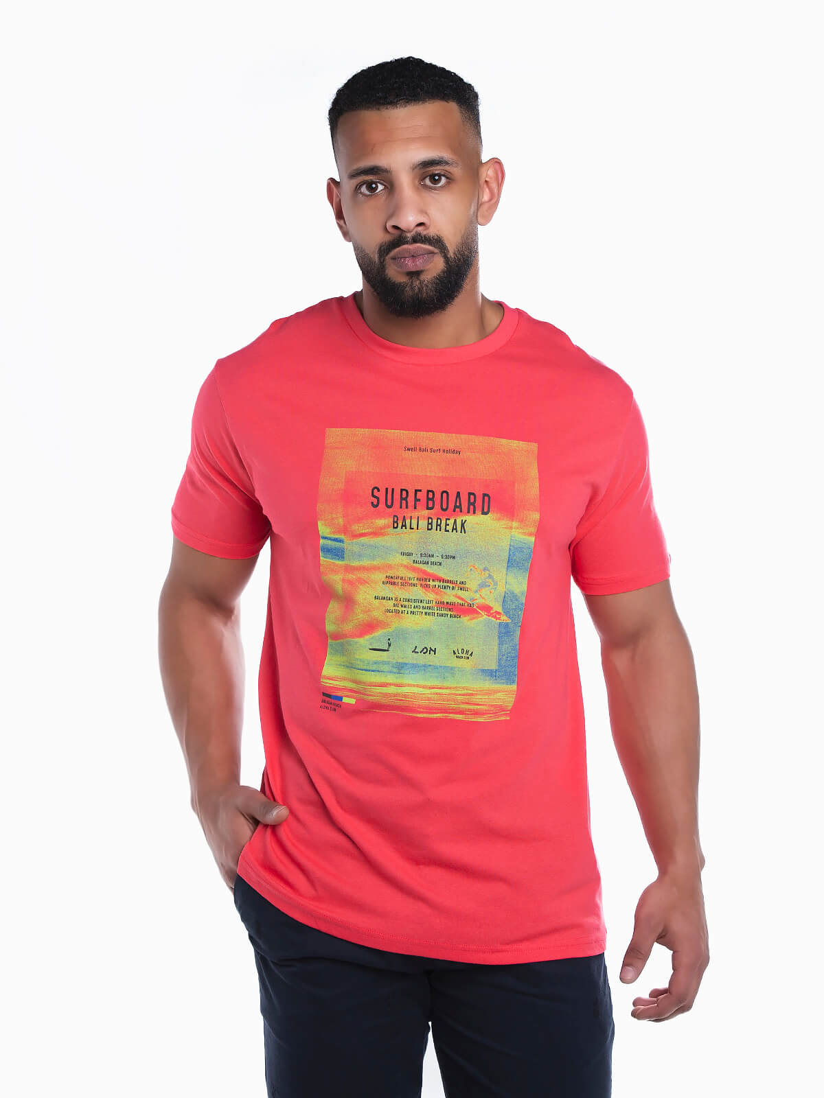 T-shirt de manga curta com estampado ‘Surfboard’ e imagem. T-shirt para homem com gola redonda.