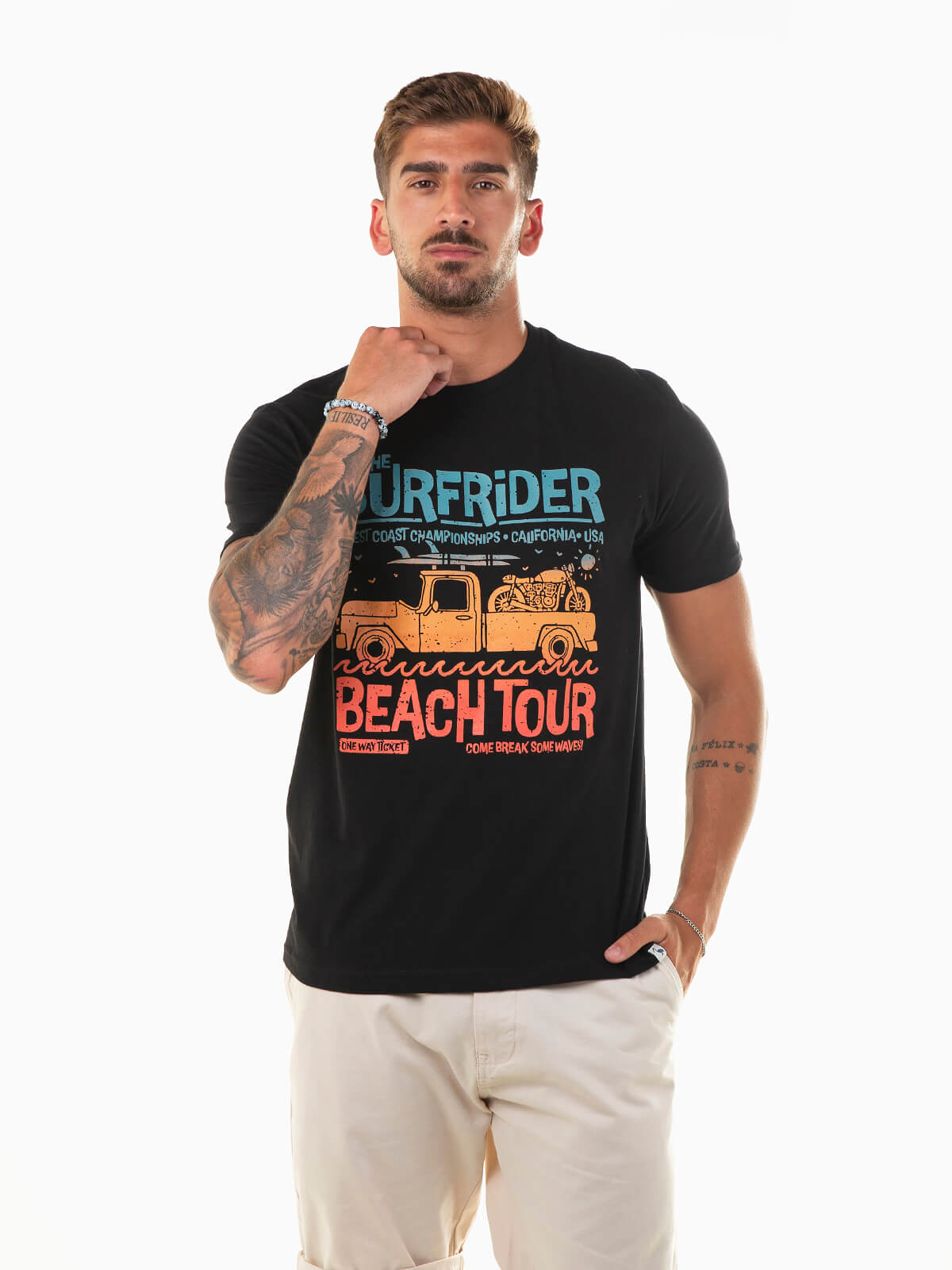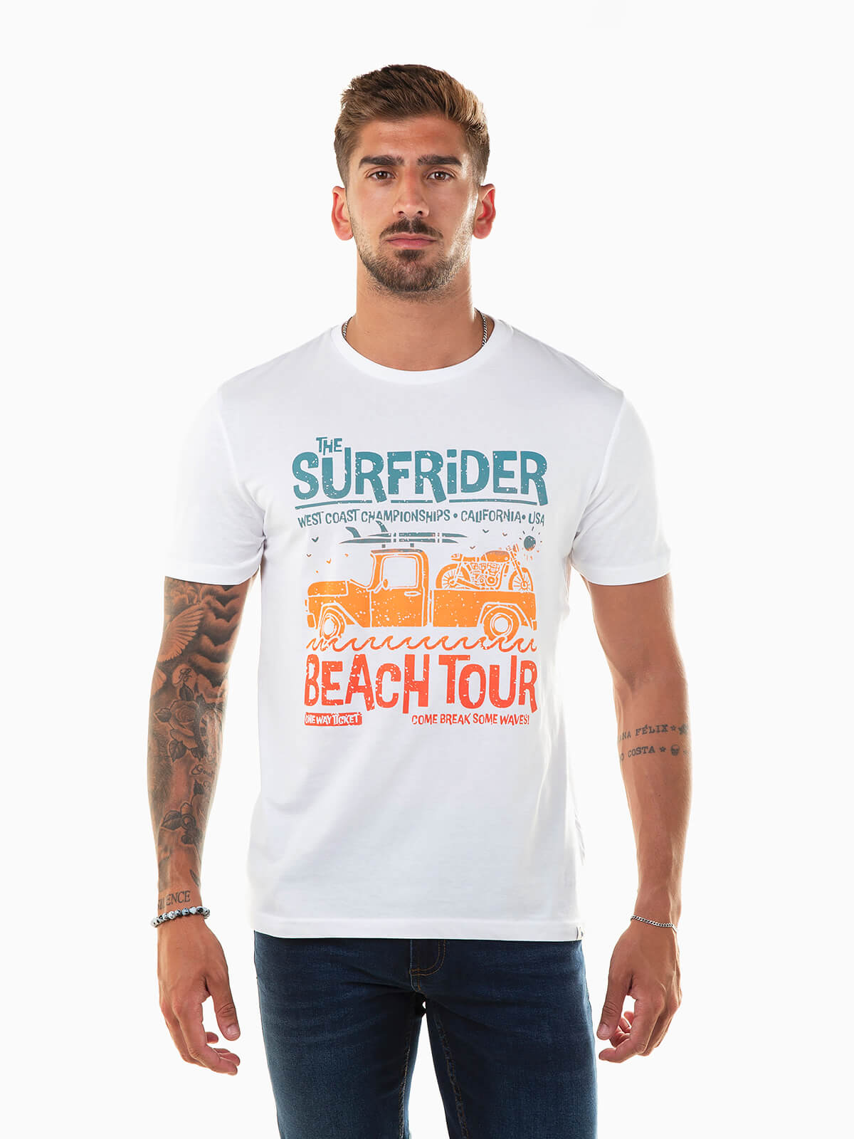 T-shirt de manga curta com motivos estampados à frente. T-shirt 100% algodão para homem com gola redonda.