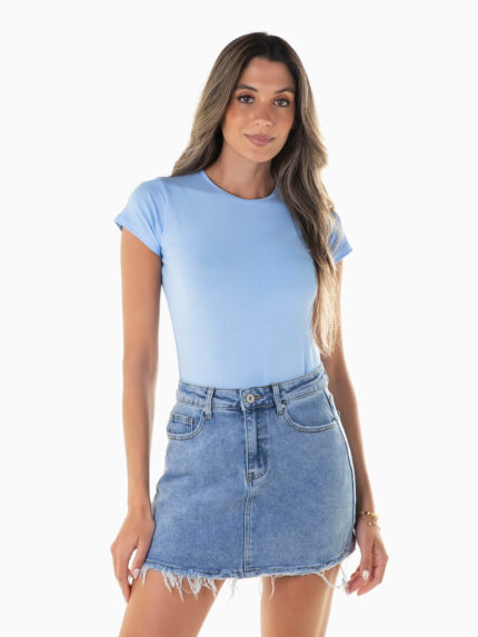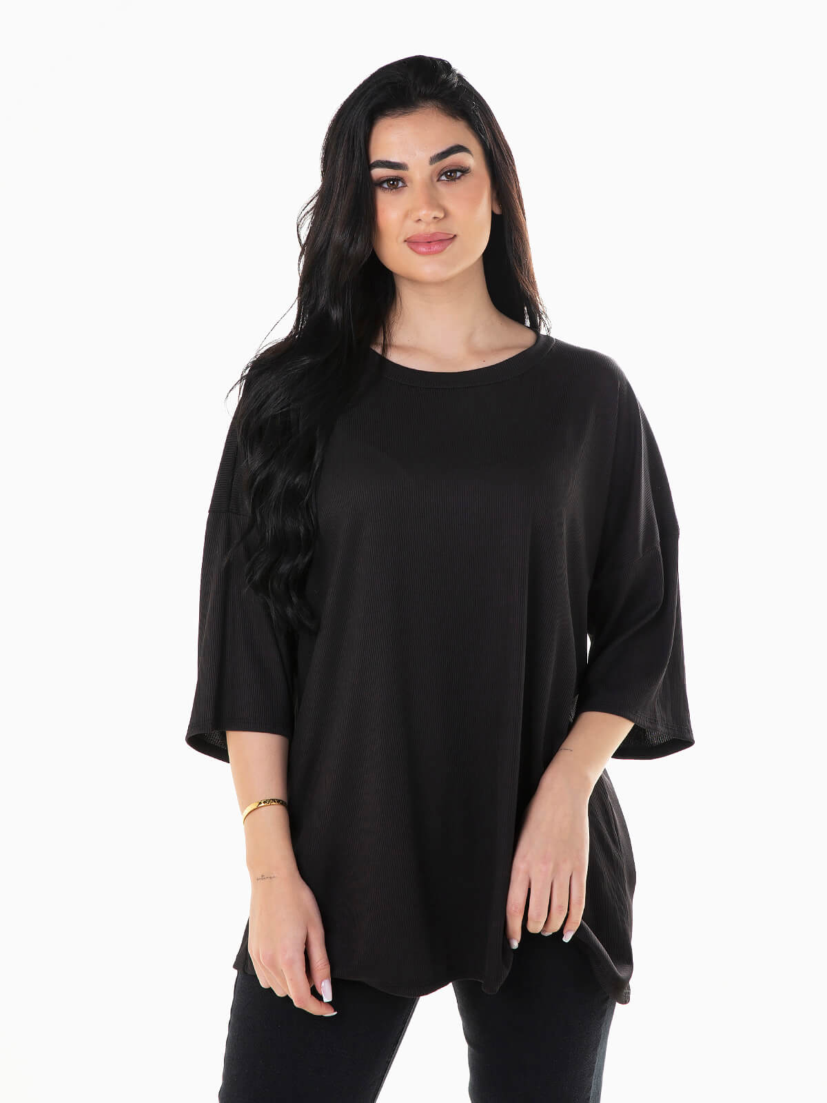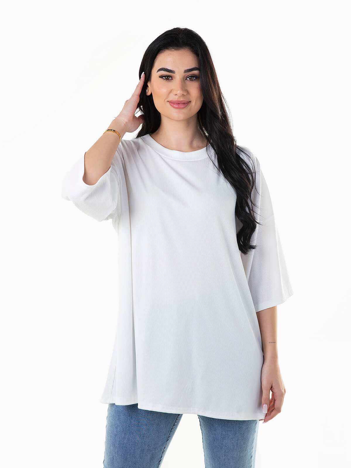 T-shirt oversize de manga curta em malha canelada. T-shirt comprida com decote redondo.