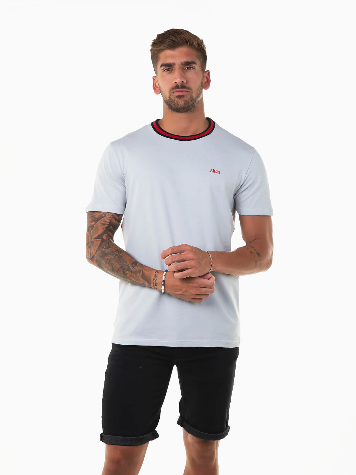T-shirt em tecido piqué 100% algodão para maior durabilidade e conforto. T-shirt de manga curta para homem com gola redonda em contraste. Bordado no peito.