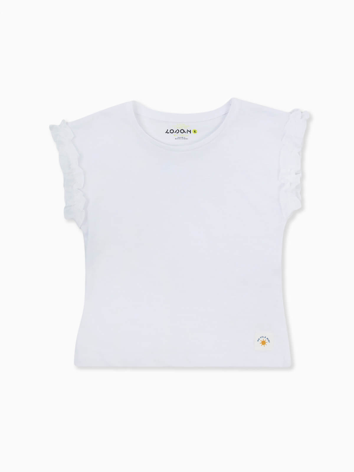 T-shirt sem mangas com folho aplicado na cava. T-shirt em tecido 100% algodão com decote redondo e símbolo aplicado na base.
