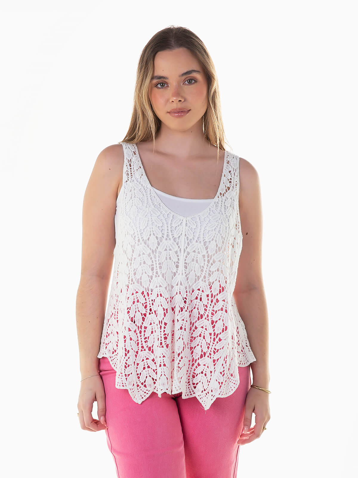 Top alças em crochet 100% algodão. Top com cós arredondado e decote em bico.