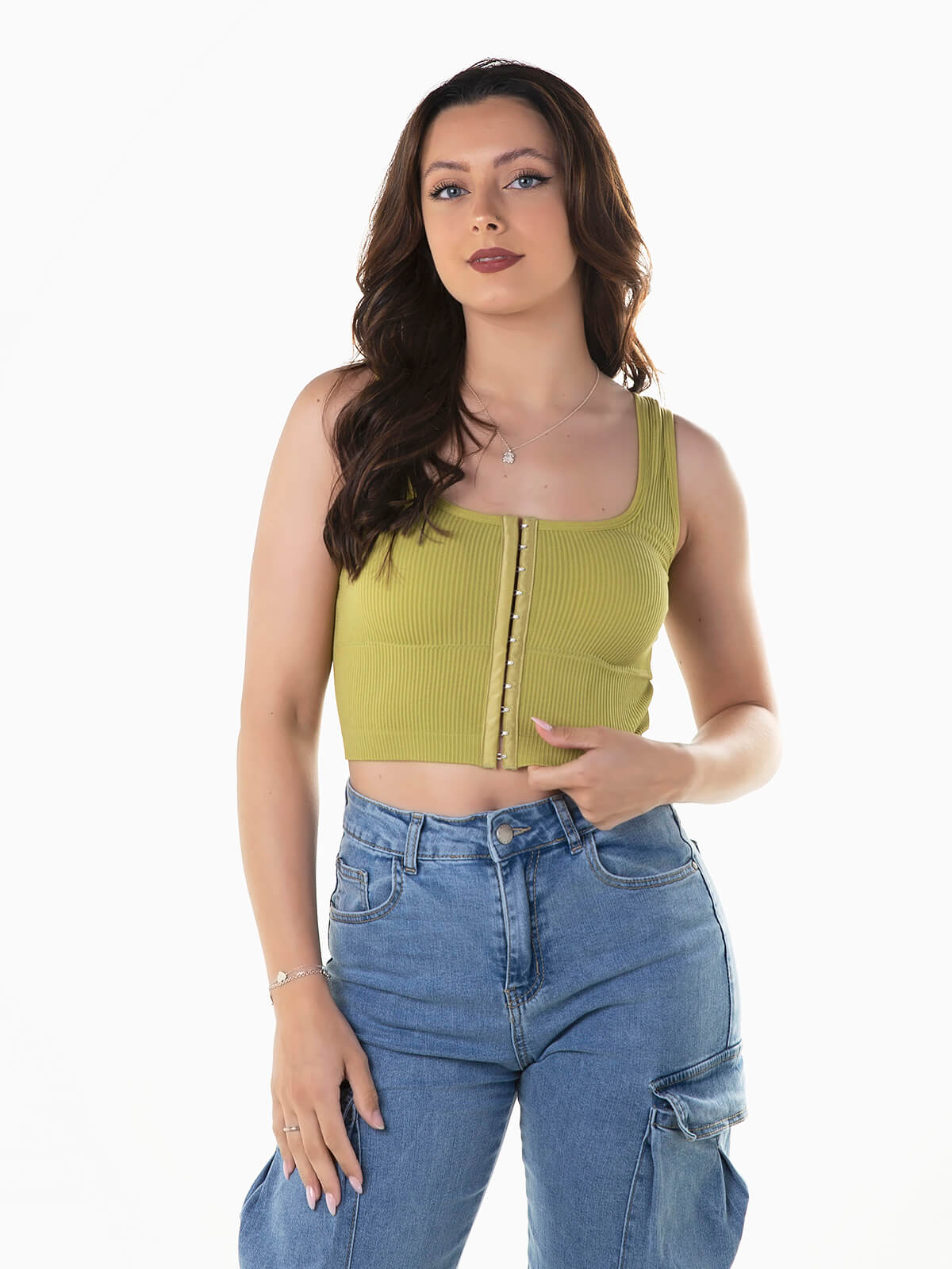 Top curto com colchetes
