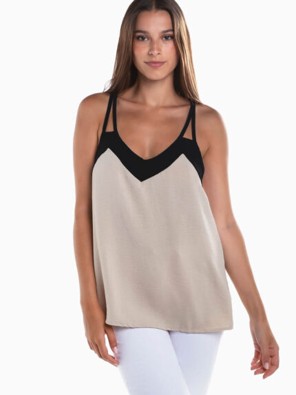 Top curto com decote halter para senhora. Top manga cava em malha trabalhada ziguezague e pormenores perfurados. Aperto posterior de botão.