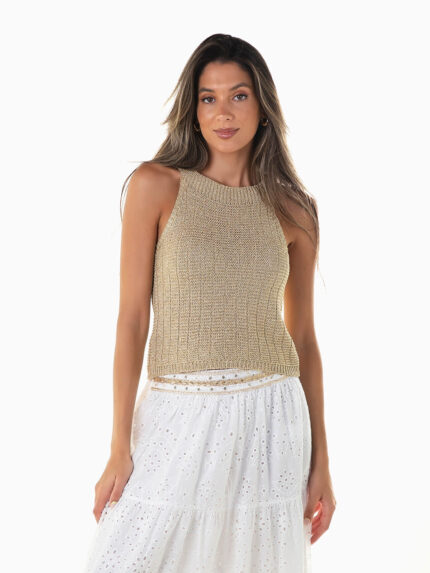 Top de renda com dupla alça cruzada na parte posterior. Top justo com peito forrado e almofadado.