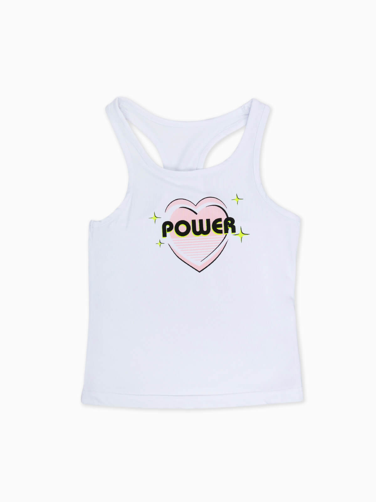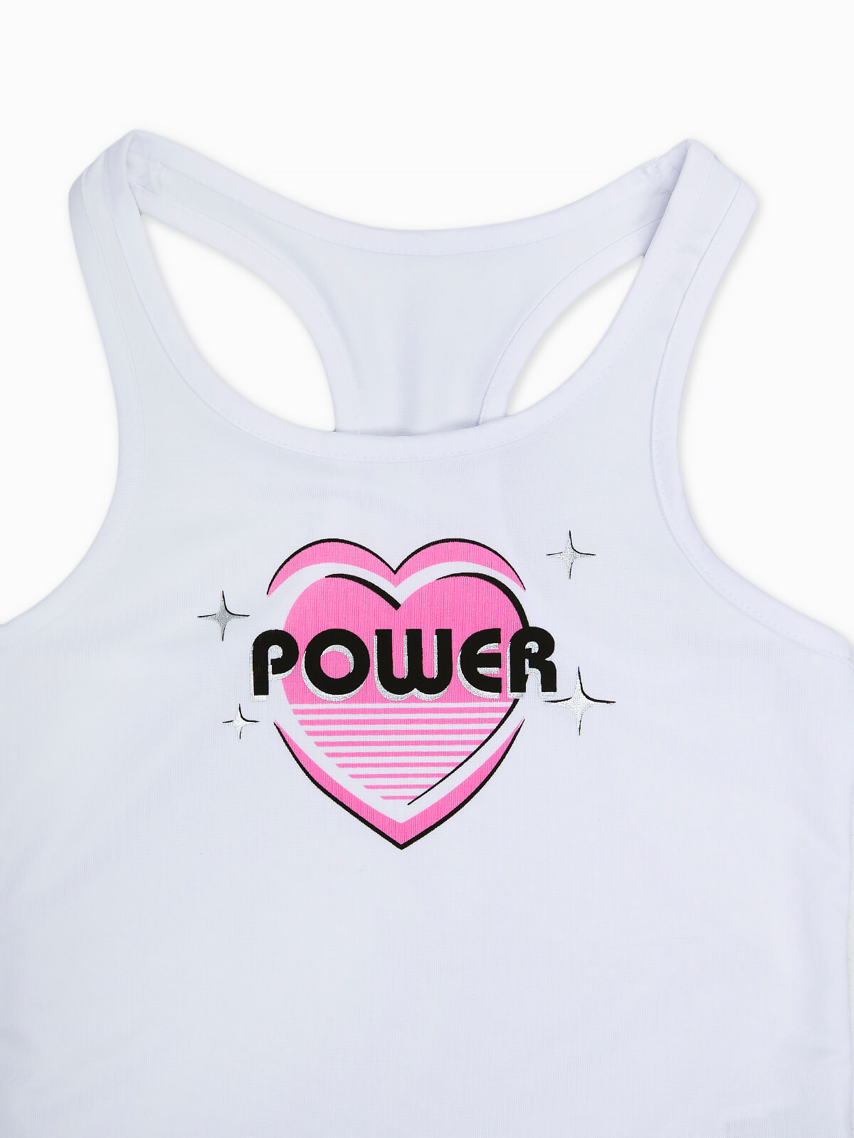 Top desportivo com estampado para menina. Top com costas natação de gola redonda. Tecido confortável de secagem rápida.