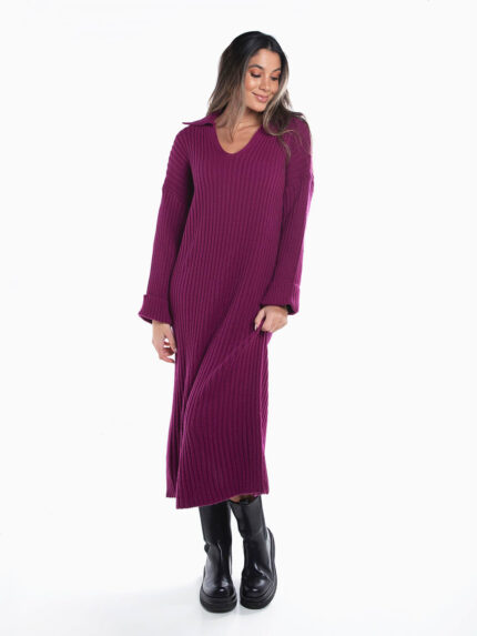 Vestido camel comprido combinado com tecido em pele sintética. Vestido manga curta com decote redondo e aperto lateral botões de pressão. Pormenor de cinto para ajustar.