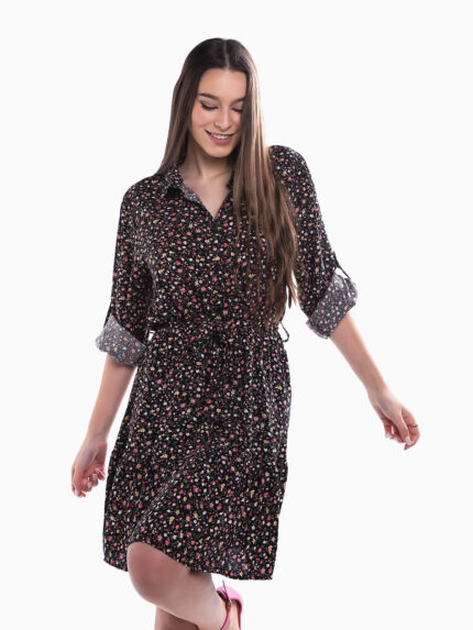 Vestido comprido de alças com estampado de zebra para senhora. Vestido com decote redondo e botões aplicados para efeito. Folho na base.