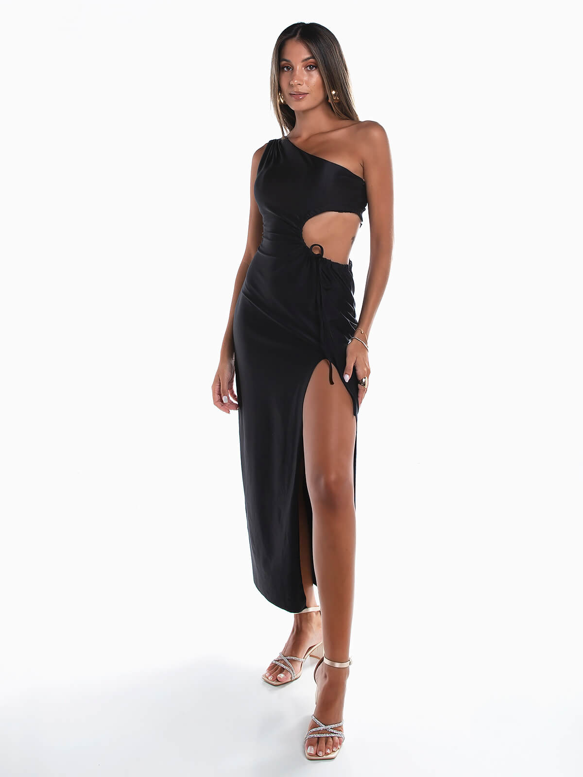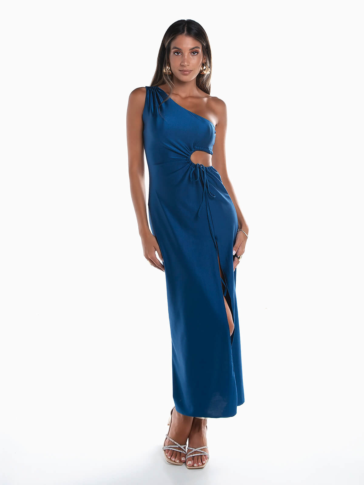 Vestido comprido assimétrico cut out