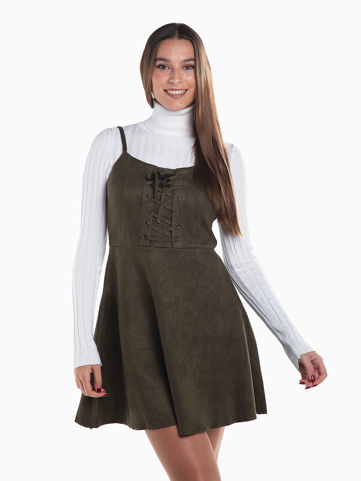 Início Mulher Vestidos Vestidos Curtos Vestido curto alças efeito camurça