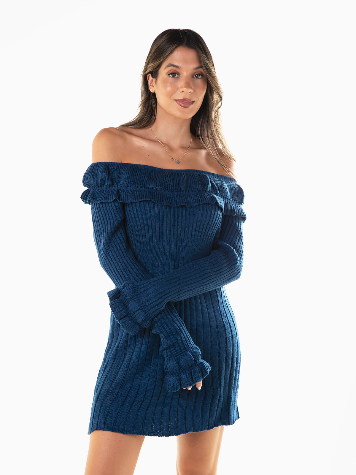 Início Mulher Vestidos Vestidos Curtos Vestido curto malha canelada com folhos