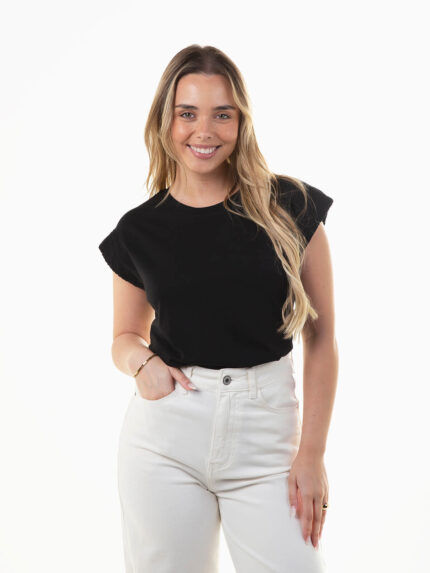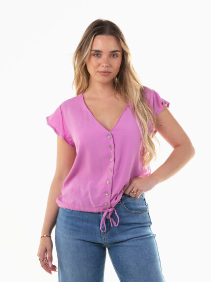 Vestido curto sem mangas em tecido texturizado semitransparente para mulher. Vestido fluído com painéis com decote em V e cordão para laço.