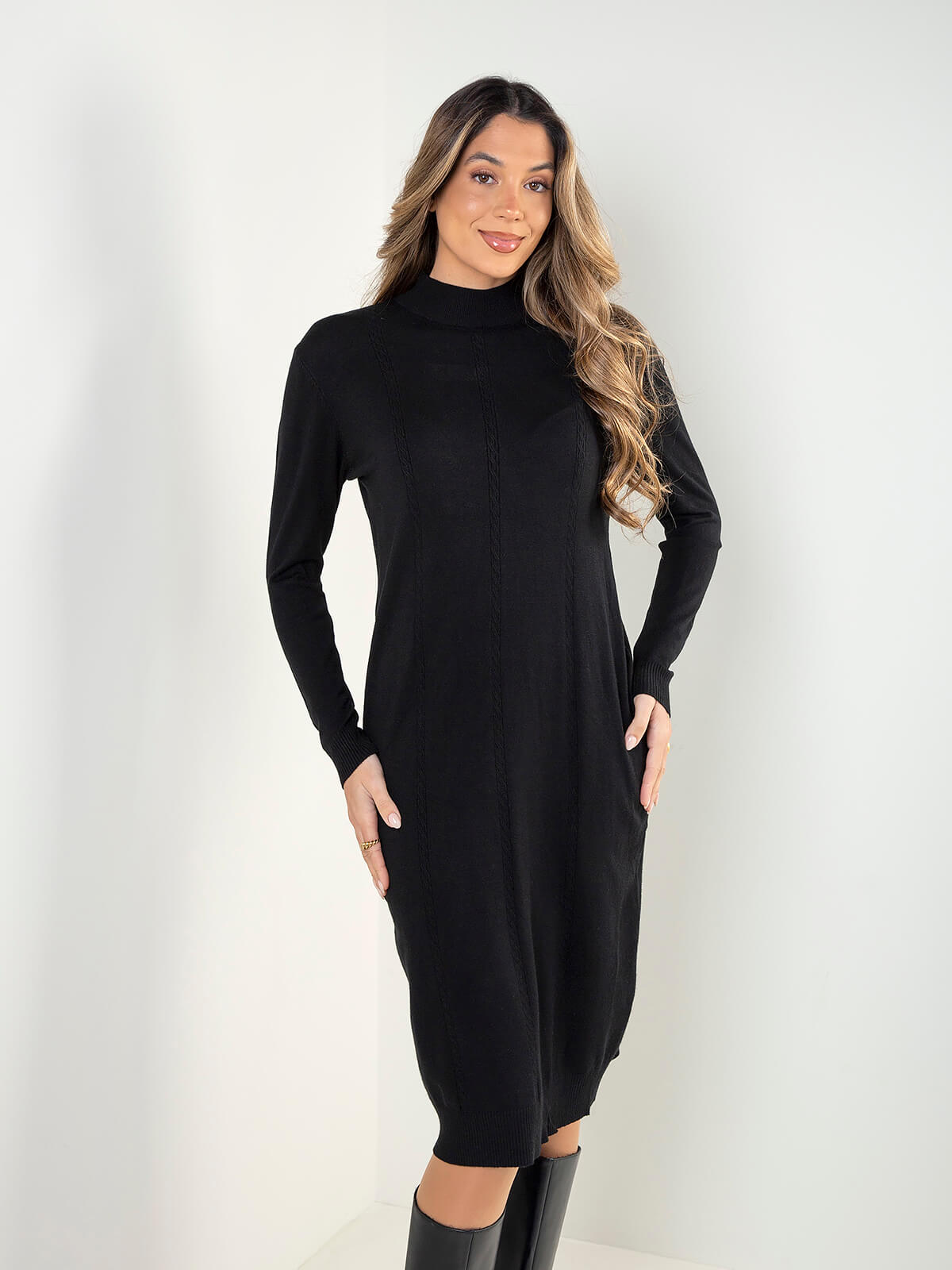 Início Mulher Vestidos Vestidos Midi Vestido malha entrançada midi gola perkins