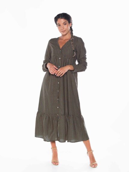 Vestido midi de ganga com alças finas reguláveis. Vestido ganga fina 100% algodão com encaixe de folhos na base. Cintura elástica. Decote de trespasse.
