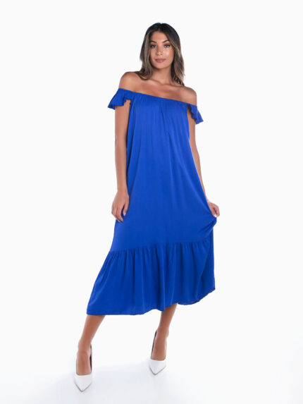 Vestido midi em malha canelada com gola alta para senhora. Vestido justo de manga comprida com botões chapa e pormenores recortados nos punhos. Abertura na base.