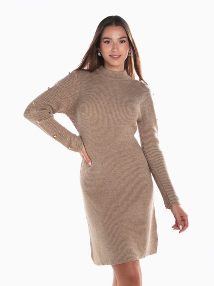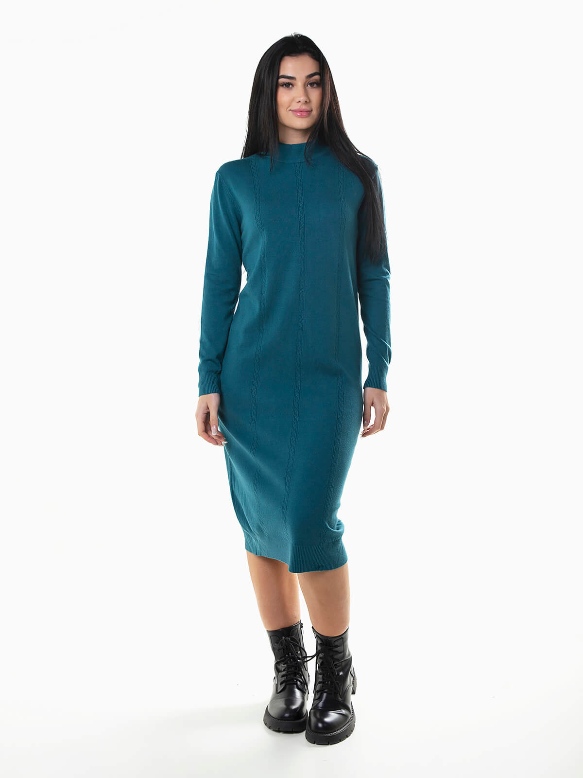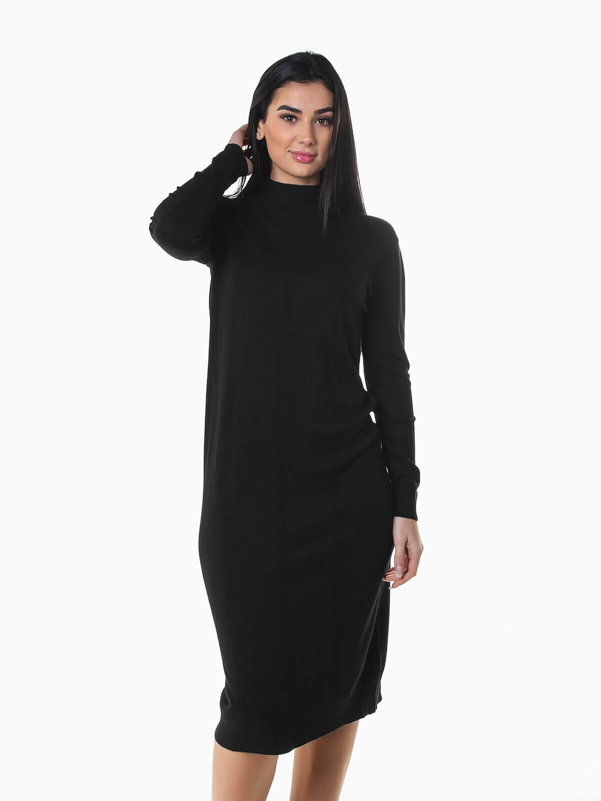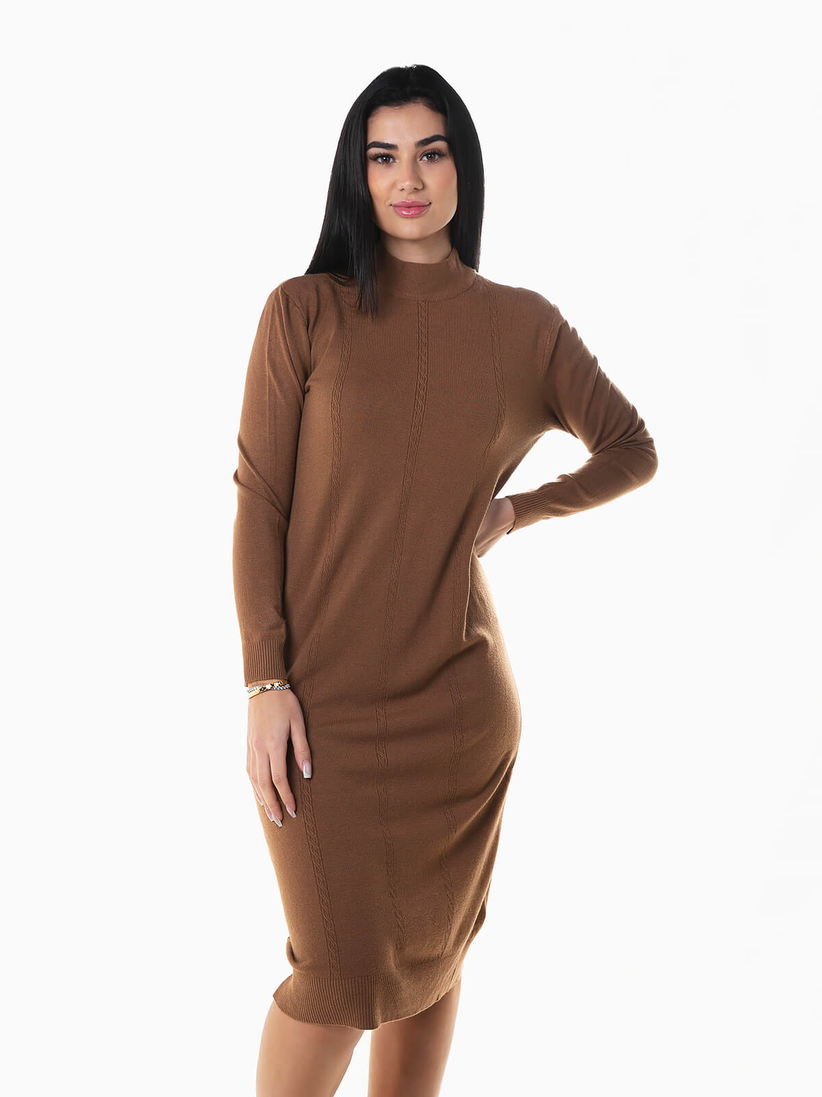 Vestido midi de malha com estrutura. Vestido manga comprida com gola perkins. Acabamentos em nervuras.