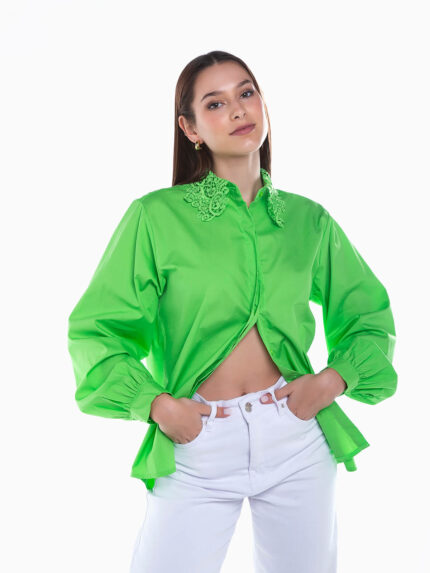Camisa manga comprida gola crochet