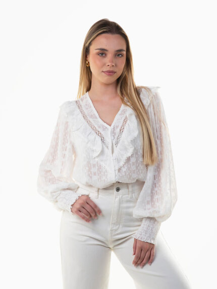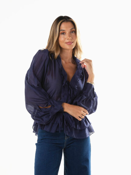 Blusa semitransparente com folhos