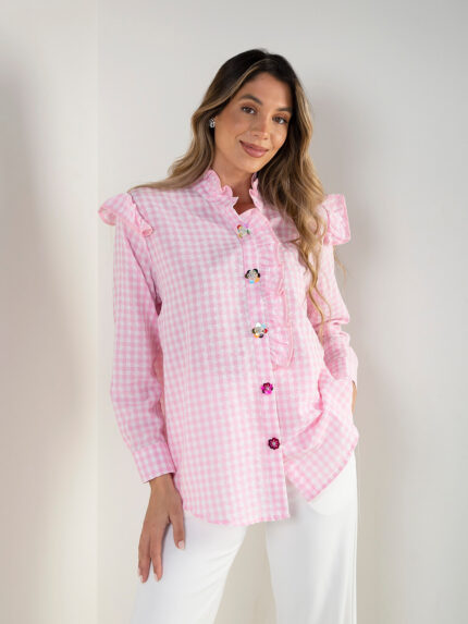 Camisa vichy com folhos