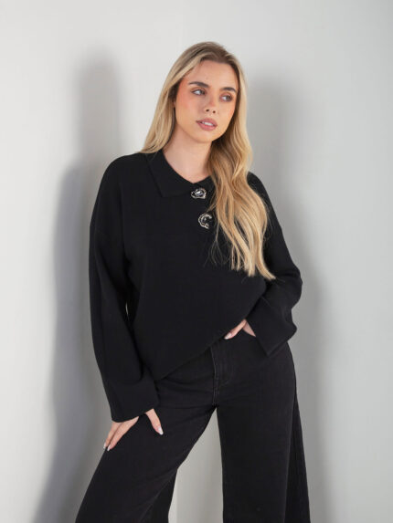 Camisola malha com gola subida e botões