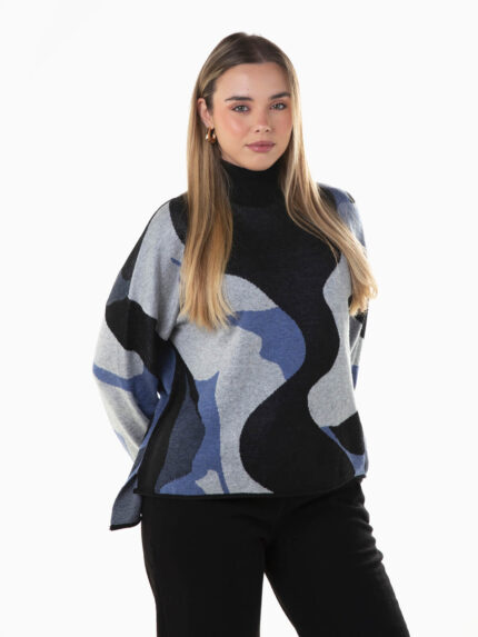 Camisola malha gola alta com padrão losangos