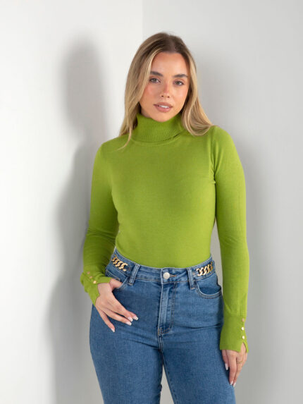 Camisola malha fina canelada gola alta