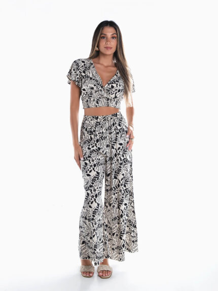 Conjunto estampado top e calças