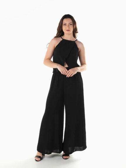 Conjunto fluído top cruzado e calças