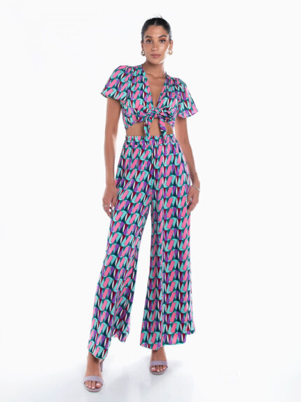 Conjunto fluído estampado geométrico