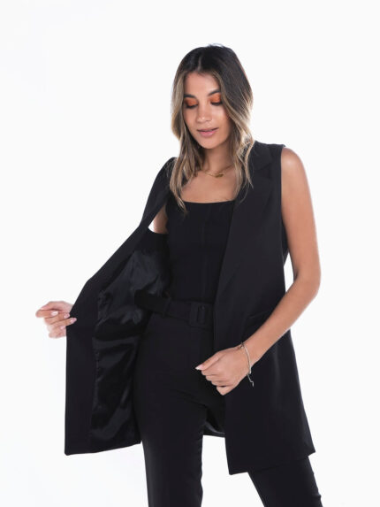 Colete fato comprido com aberturas
