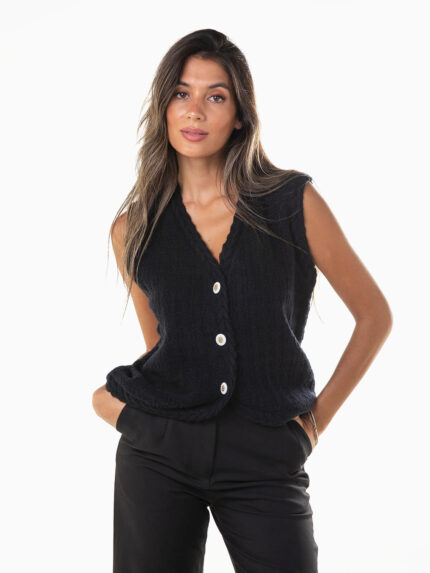 Colete malha entrançada com botões