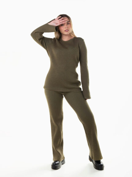 Conjunto malha canelada camisola e calças