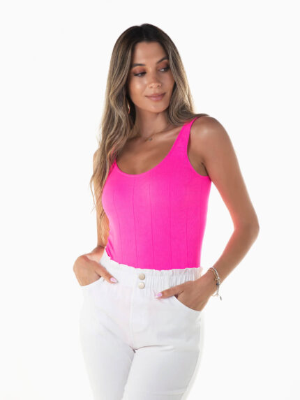 Body alças canelado elástico
