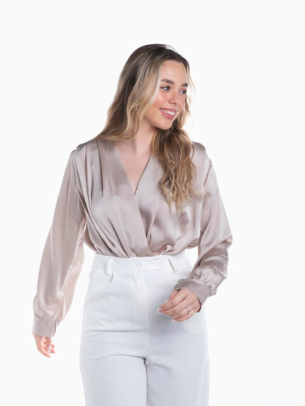 Body acetinado manga comprida