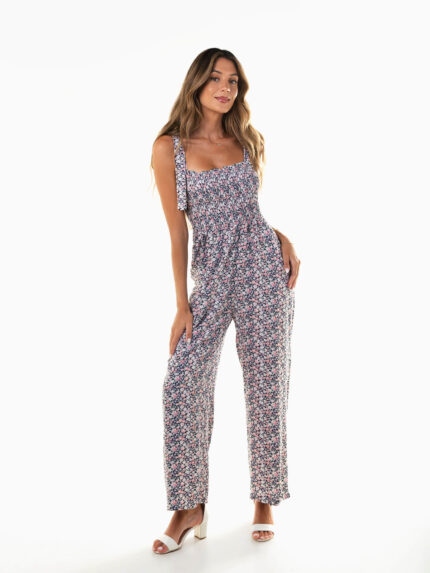 Macacão comprido fluído floral