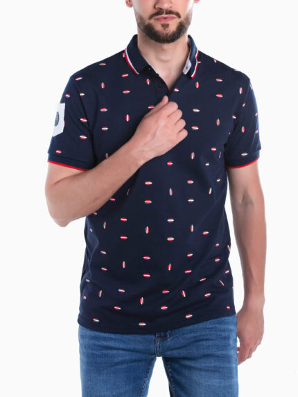 Polo manga curta com bandeira
