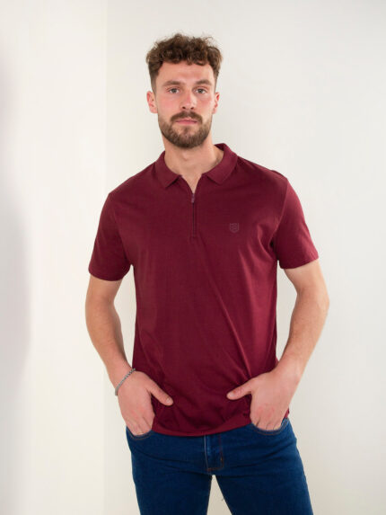 Polo com textura e fecho zíper